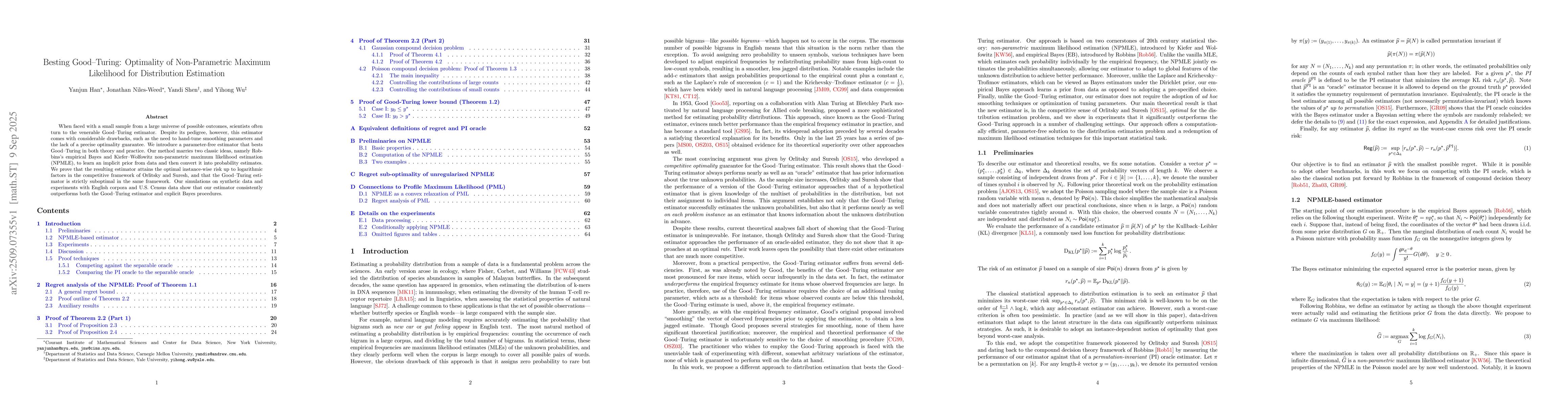 When faced with a small sample from a large universe of possible outcomes, scientists often turn to the venerable Good--Turing estimator. Despite its pedigree, however, this estimator comes with considerable drawbacks, such as the need to hand-tune smoothing parameters and the lack of a precise optimality guarantee. We introduce a parameter-free estimator that bests Good--Turing in both theory and practice. Our method marries two classic ideas, namely Robbins's empirical Bayes and Kiefer--Wolfowitz non-parametric maximum likelihood estimation (NPMLE), to learn an implicit prior from data and then convert it into probability estimates. We prove that the resulting estimator attains the optimal instance-wise risk up to logarithmic factors in the competitive framework of Orlitsky and Suresh, and that the Good--Turing estimator is strictly suboptimal in the same framework. Our simulations on synthetic data and experiments with English corpora and U.S. Census data show that our estimator consistently outperforms both the Good--Turing estimator and explicit Bayes procedures.