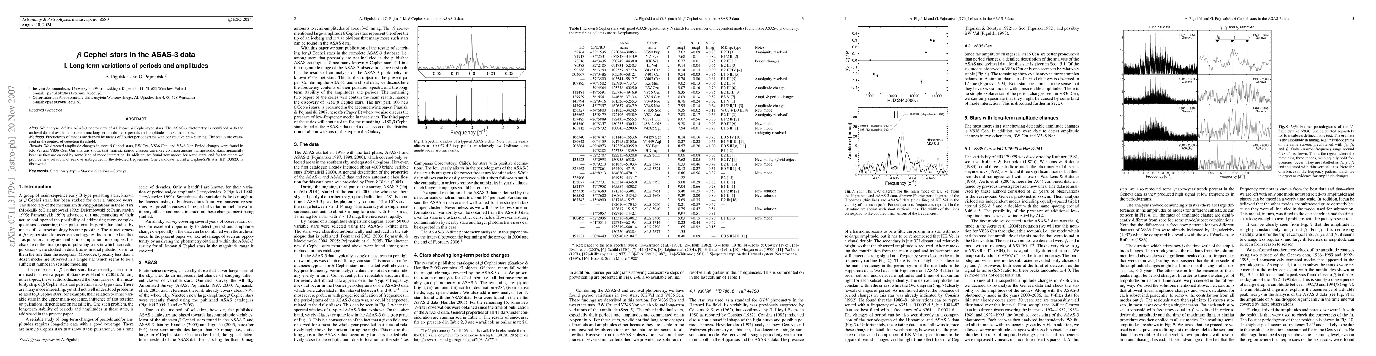 This paper analyzes ASAS-3 photometry of 41 Beta Cephei stars, revealing long-term variations in periods and amplitudes, with period changes detected in KK Vel and V836 Cen, and amplitude changes in BW Cru, V836 Cen, and V348 Nor. The study also identifies new modes for seven stars and discovers a candidate hybrid Beta Cephei/SPB star, HD133823.