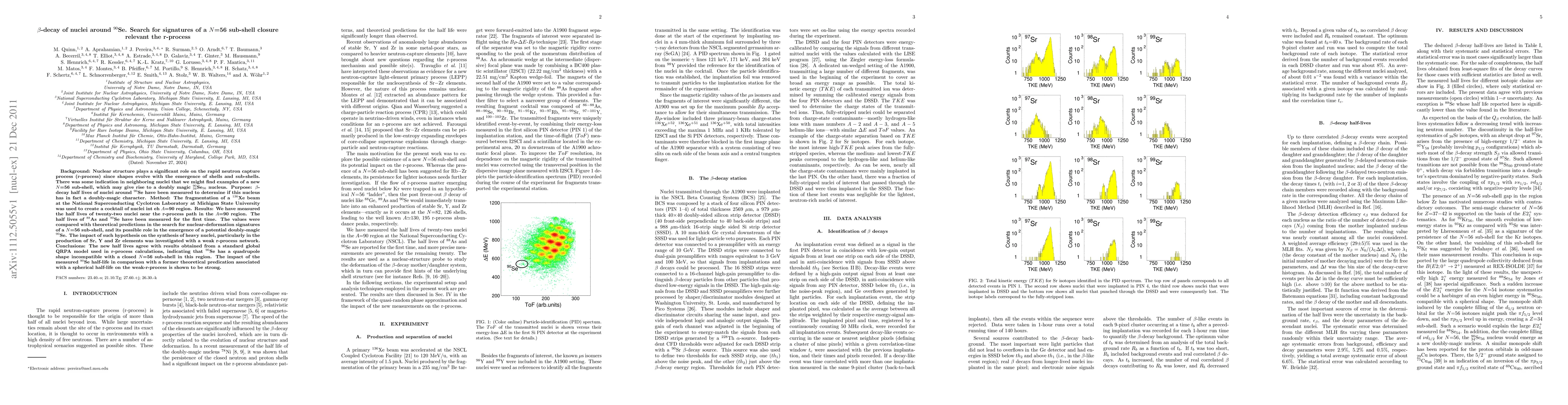 Nuclear structure plays a significant role on the rapid neutron capture process (r-process) since shapes evolve with the emergence of shells and sub-shells. There was some indication in neighboring nuclei that we might find examples of a new N=56 sub-shell, which may give rise to a doubly magic Se-90 nucleus. Beta-decay half lives of nuclei around Se-90 have been measured to determine if this nucleus has in fact a doubly-magic character. The fragmentation of Xe-136 beam at the National Superconducting Cyclotron Laboratory at Michigan State University was used to create a cocktail of nuclei in the A=90 region. We have measured the half lives of twenty-two nuclei near the r-process path in the A=90 region. The half lives of As-88 and Se-90 have been measured for the first time. The values were compared with theoretical predictions in the search for nuclear-deformation signatures of a N=56 sub-shell, and its possible role in the emergence of a potential doubly-magic Se-90. The impact of such hypothesis on the synthesis of heavy nuclei, particularly in the production of Sr, Y and Zr elements was investigated with a weak r-process network. The new half lives agree with results obtained from a standard global QRPA model used in r-process calculations, indicating that Se-90 has a quadrupole shape incompatible with a closed N=56 sub-shell in this region. The impact of the measured Se-90 half-life in comparison with a former theoretical predication associated with a spherical half-life on the weak-r-process is shown to be strong.