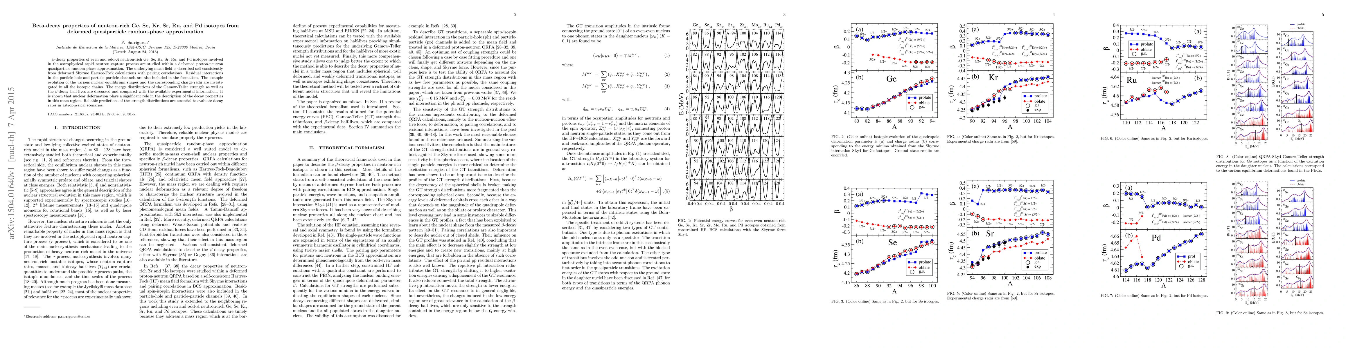 This paper investigates the beta-decay properties of neutron-rich Ge, Se, Kr, Sr, Ru, and Pd isotopes using a deformed quasiparticle random-phase approximation, highlighting the significant role of nuclear deformation in decay properties and providing reliable predictions for astrophysical decay rates.