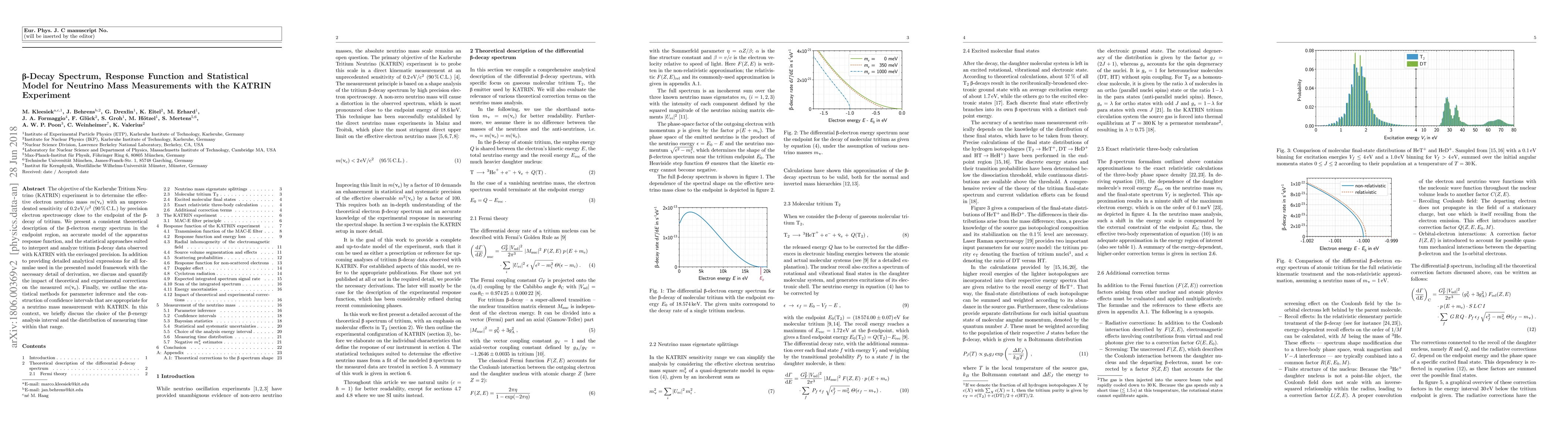 The KATRIN experiment aims to measure the effective electron neutrino mass $m(\nu_\text{e})$ with high precision using $\beta$ decay spectroscopy, presenting a detailed theoretical framework and statistical model for analyzing tritium $\beta$ decay data. The study also quantifies the impact of corrections and outlines the statistical methods for parameter inference and confidence interval construction.