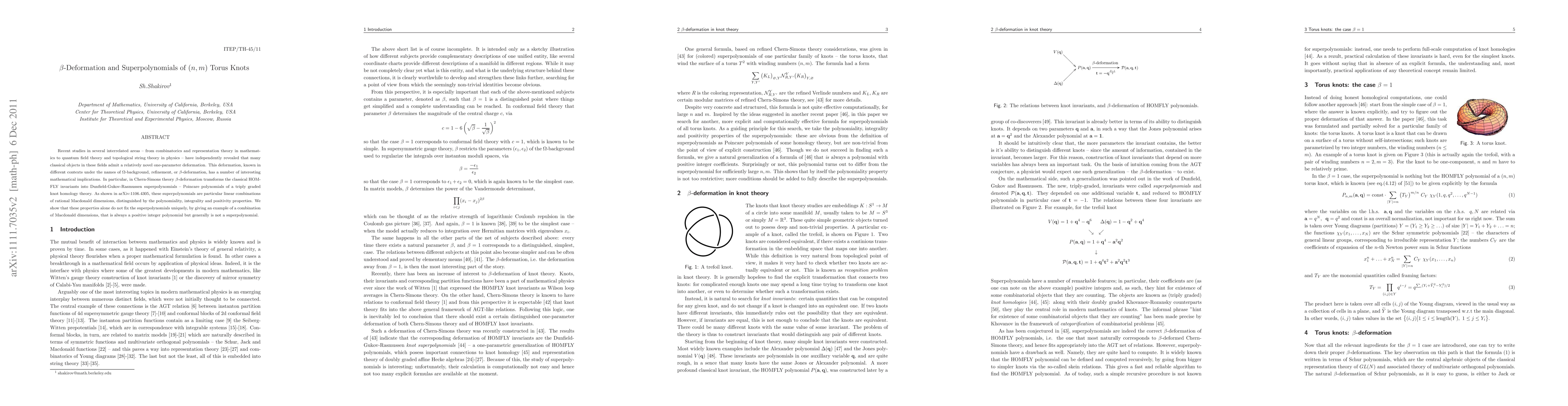 Researchers show that beta-deformation of (n,m) torus knots transforms HOMFLY invariants into a triply graded knot homology theory represented by superpolynomials, which can be linear combinations of rational Macdonald dimensions.