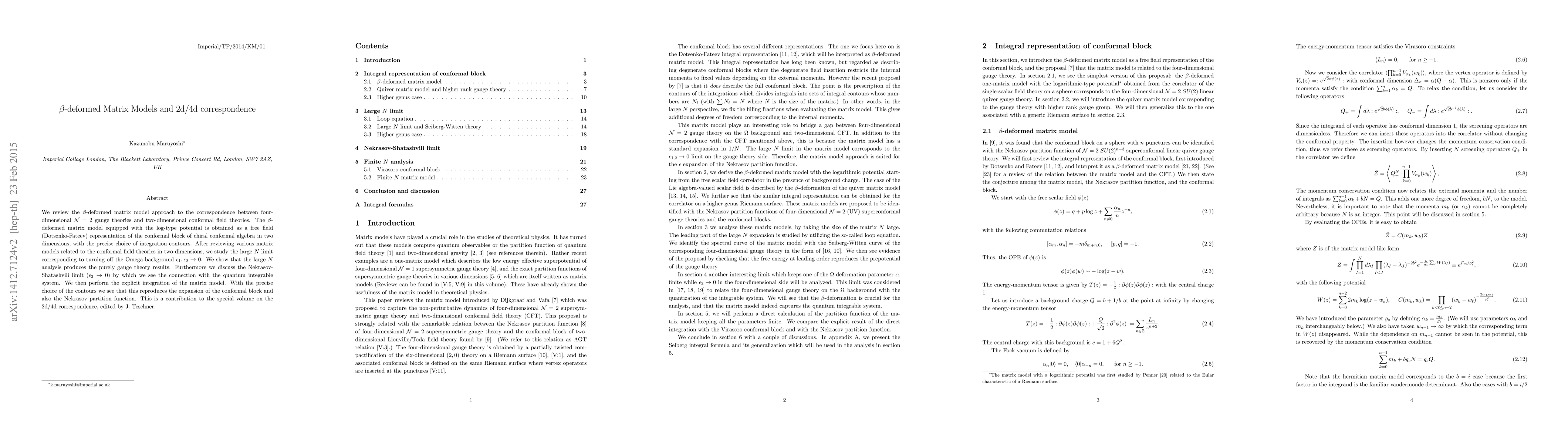 This is the fourth article in the collection of reviews "Exact results on N=2 supersymmetric gauge theories", ed. J.Teschner. It describes a very useful mathematical representation of the results of the localisation computations of instanton partition functions as integrals having a form familiar from the study of matrix models. Techniques from the study of matrix models can be employed to extract important information on the instanton partition functions in various limits and special cases.