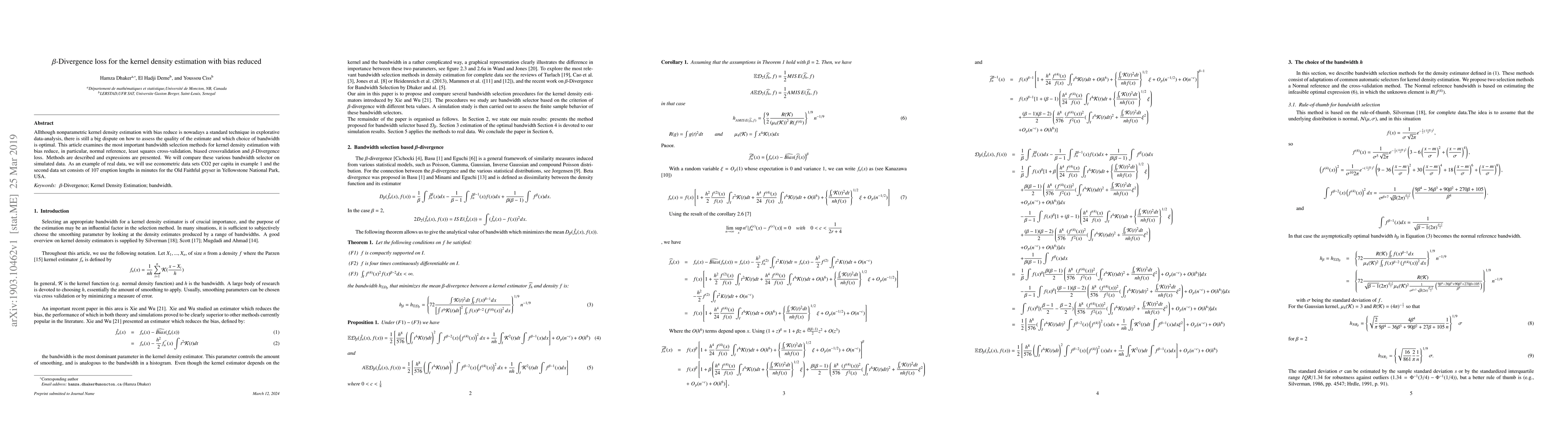 This paper explores various bandwidth selection methods for nonparametric kernel density estimation with bias reduction, focusing on normal reference, least squares cross-validation, biased cross-validation, and $\beta$-Divergence loss. The study compares these methods using simulated and real econometric data, specifically CO2 per capita data.
