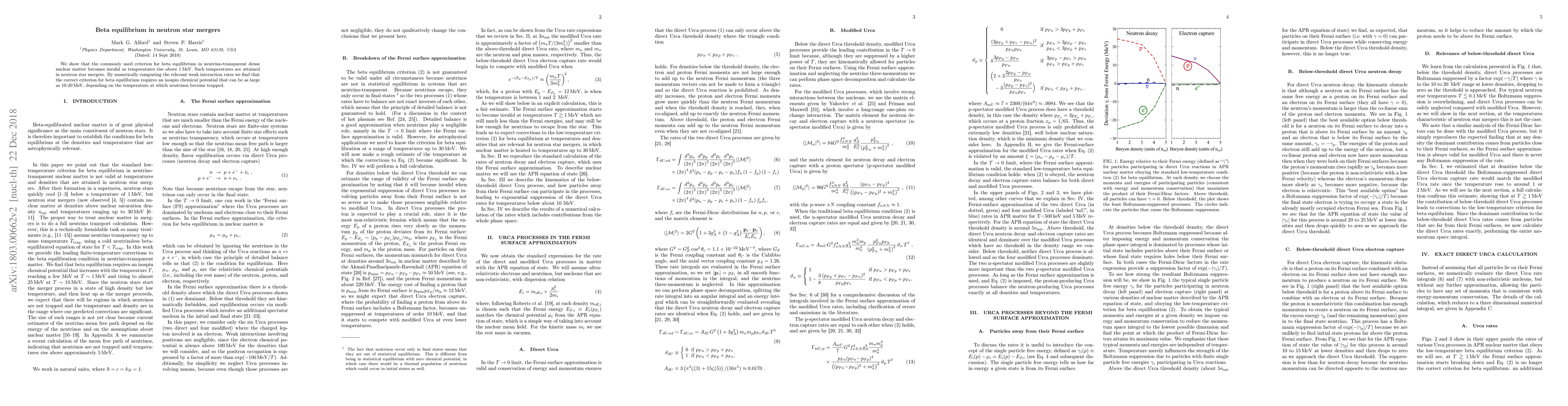 We show that the commonly used criterion for beta equilibrium in neutrino-transparent dense nuclear matter becomes invalid as temperatures rise above 1 MeV. Such temperatures are attained in neutron star mergers. By numerically computing the relevant weak interaction rates we find that the correct criterion for beta equilibrium requires an isospin chemical potential that can be as large as 10-20 MeV, depending on the temperature at which neutrinos become trapped.