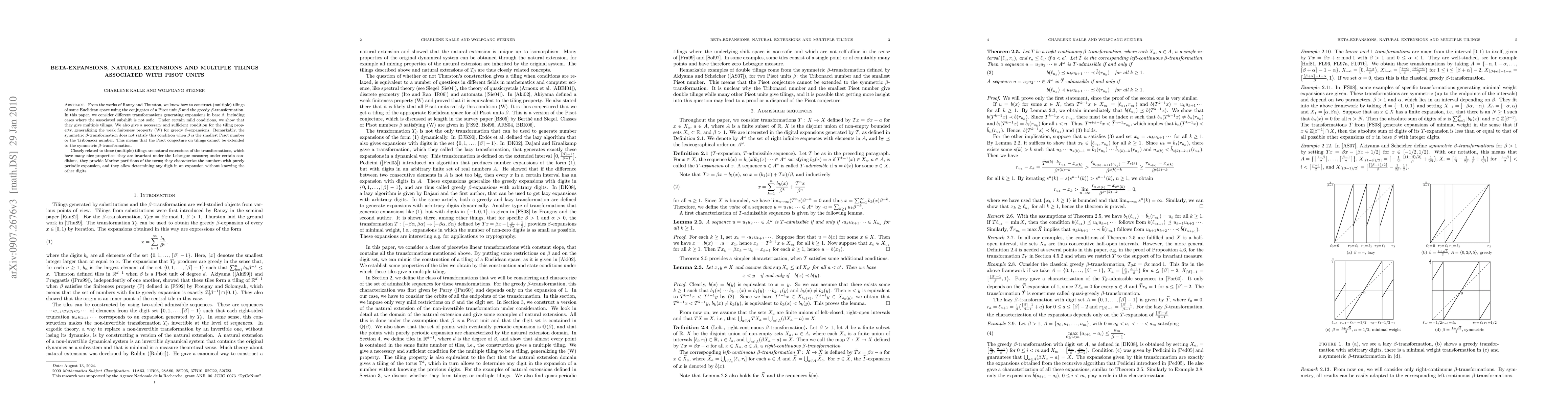 This paper explores the construction of multiple tilings in Euclidean space using transformations based on Pisot units, showing that certain base $\beta$ expansions generate these tilings under mild conditions. It also discusses natural extensions of these transformations, which possess properties like invariance under Lebesgue measure and Markov partitions.