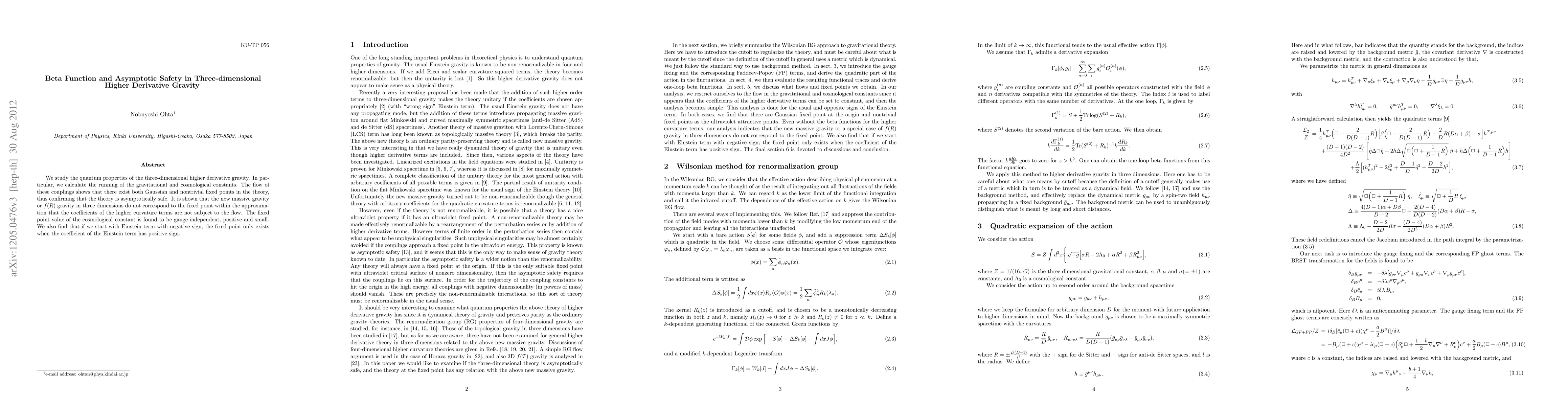 This paper investigates the quantum properties of three-dimensional higher derivative gravity, finding both Gaussian and nontrivial fixed points that confirm asymptotic safety. The study reveals a gauge-independent, positive, and small fixed point value for the cosmological constant, while showing that new massive gravity or $f(R)$ gravity does not correspond to the fixed point under the given conditions.