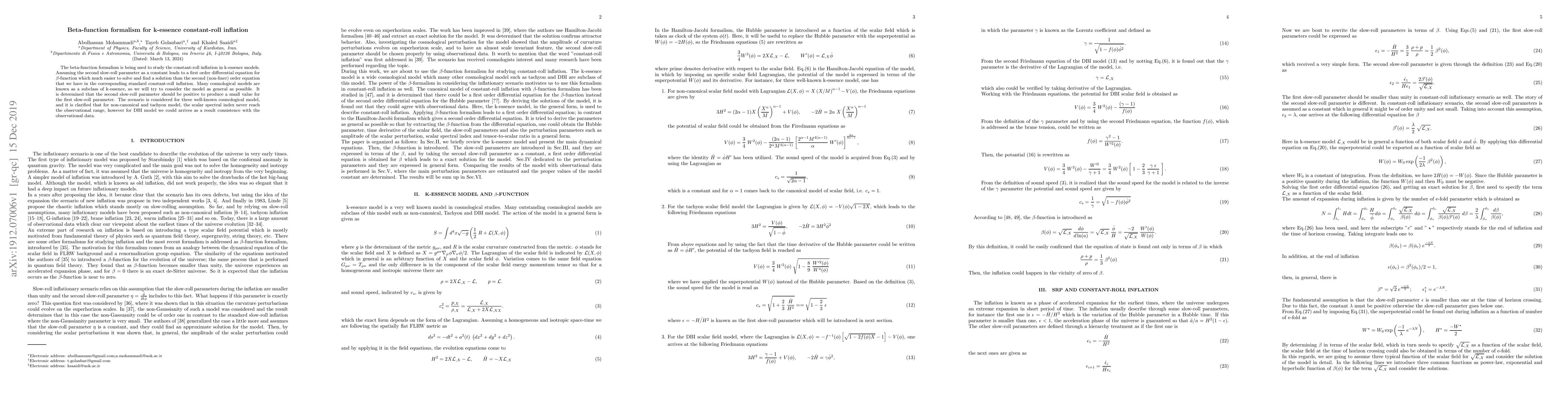 This paper utilizes the beta function formalism to explore constant-roll inflation within the k-essence model, simplifying the solution process by assuming the second slow-roll parameter as constant. The study finds that the second slow-roll parameter must be positive for small first slow-roll values, and while the non-canonical and tachyon models do not match observational data, the DBI model does.