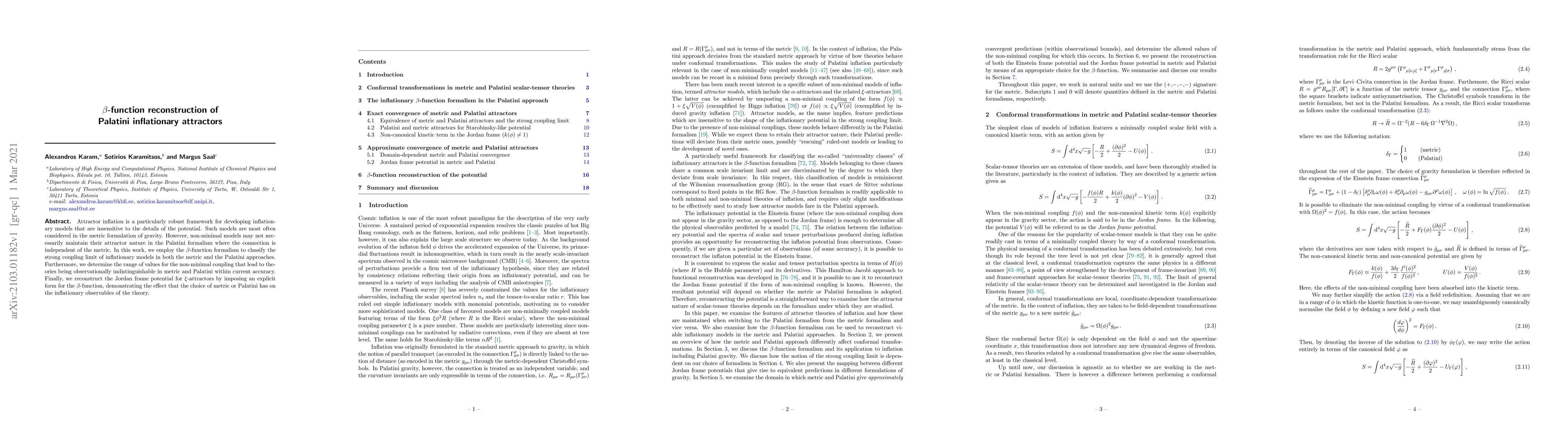 This paper uses the $\beta$-function formalism to classify inflationary models in both metric and Palatini formulations, determining the non-minimal coupling range that makes them observationally indistinguishable. It reconstructs the Jordan frame potential for $\xi$-attractors, showing how the choice of metric affects inflationary observables.