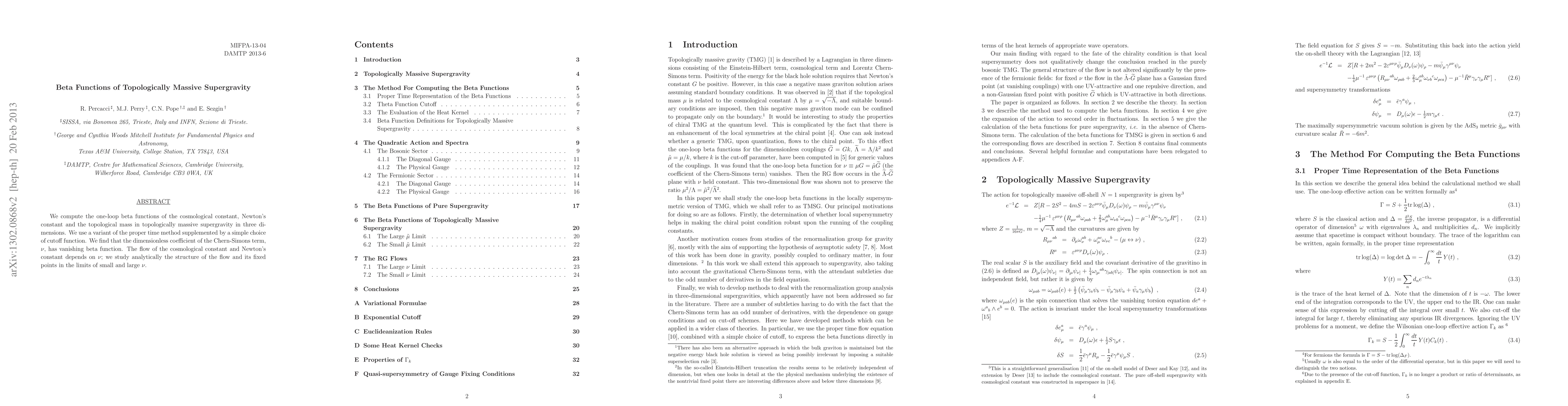 We compute the one-loop beta functions of the cosmological constant, Newton's constant and the topological mass in topologically massive supergravity in three dimensions. We use a variant of the proper time method supplemented by a simple choice of cutoff function. We find that the dimensionless coefficient of the Chern-Simons term, $\nu$, has vanishing beta function. The flow of the cosmological constant and Newton's constant depends on $\nu$; we study analytically the structure of the flow and its fixed points in the limits of small and large $\nu$.