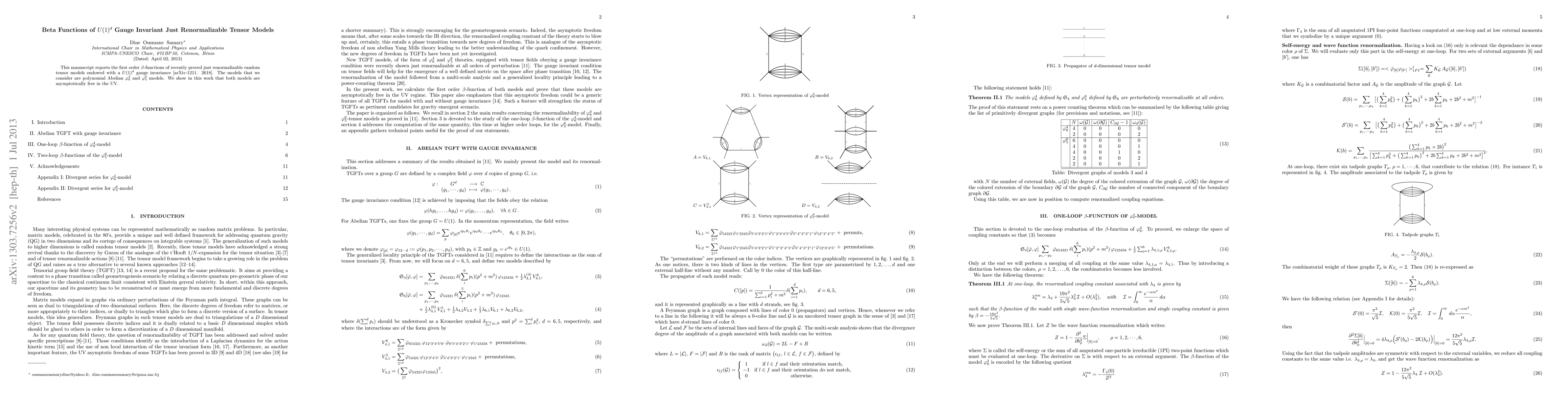 This manuscript reports the first order $\beta$-functions of recently proved just renormalizable random tensor models endowed with a $U(1)^d$ gauge invariance [arXiv:1211. 2618]. The models that we consider are polynomial Abelian $\vp^4_6$ and $\vp^6_5$ models. We show in this work that both models are asymptotically free in the UV.