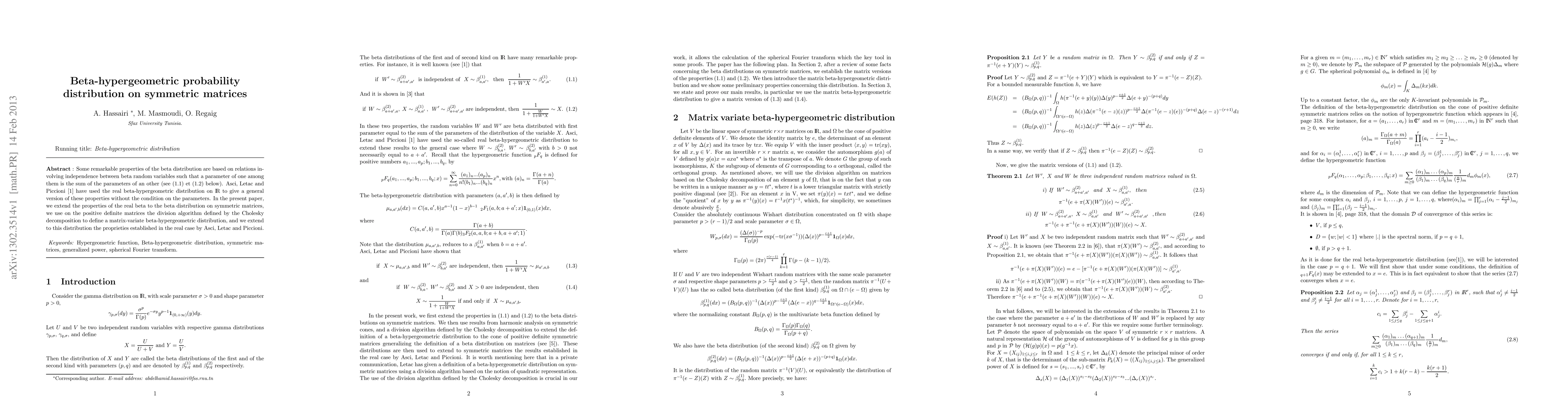 Researchers extend beta distribution properties to symmetric matrices, introducing a matrix-variate beta-hypergeometric distribution with unique properties for positive definite matrices.