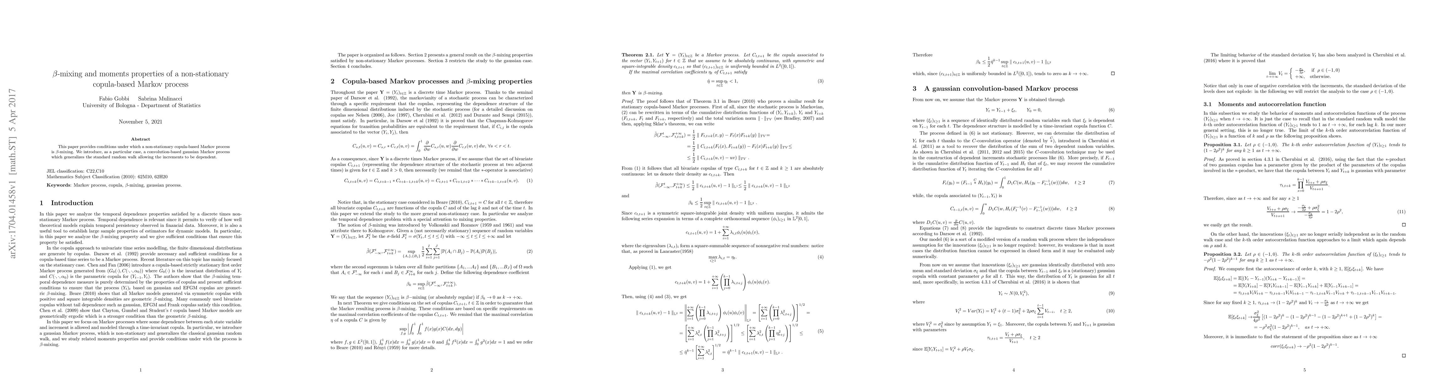 This paper provides conditions under which a non-stationary copula-based Markov process is $\beta$-mixing. We introduce, as a particular case, a convolution-based gaussian Markov process which generalizes the standard random walk allowing the increments to be dependent.