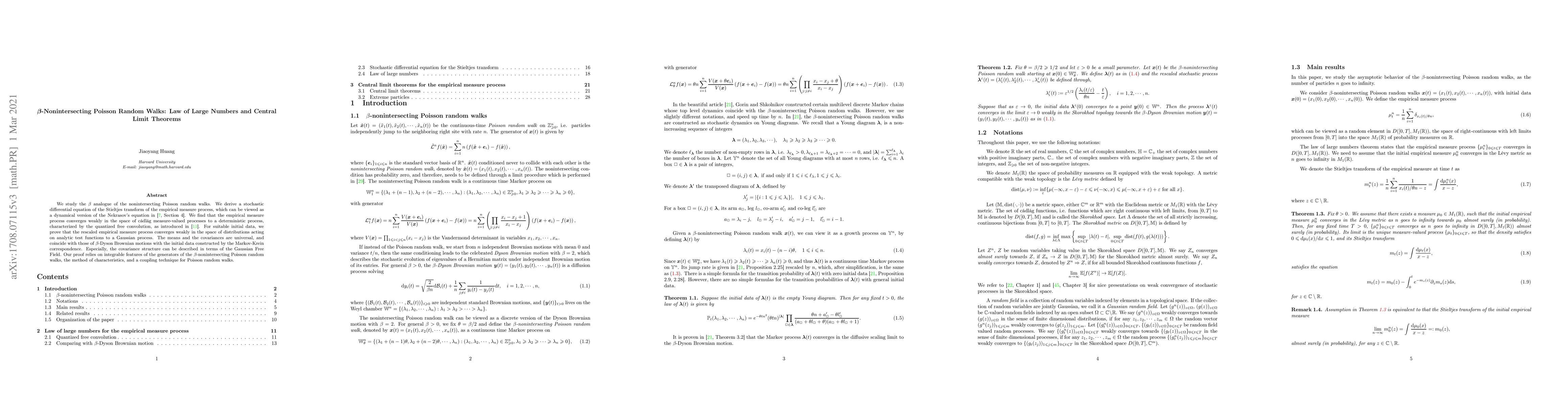 We study the $\beta$ analogue of the nonintersecting Poisson random walks. We derive a stochastic differential equation of the Stieltjes transform of the empirical measure process, which can be viewed as a dynamical version of the Nekrasov's equation in [7, Section 4]. We find that the empirical measure process converges weakly in the space of c\'adl\'ag measure-valued processes to a deterministic process, characterized by the quantized free convolution, as introduced in [11]. For suitable initial data, we prove that the rescaled empirical measure process converges weakly in the space of distributions acting on analytic test functions to a Gaussian process. The means and the covariances are universal, and coincide with those of $\beta$-Dyson Brownian motions with the initial data constructed by the Markov-Krein correspondence. Especially, the covariance structure can be described in terms of the Gaussian Free Field. Our proof relies on integrable features of the generators of the $\beta$-nonintersecting Poisson random walks, the method of characteristics, and a coupling technique for Poisson random walks.