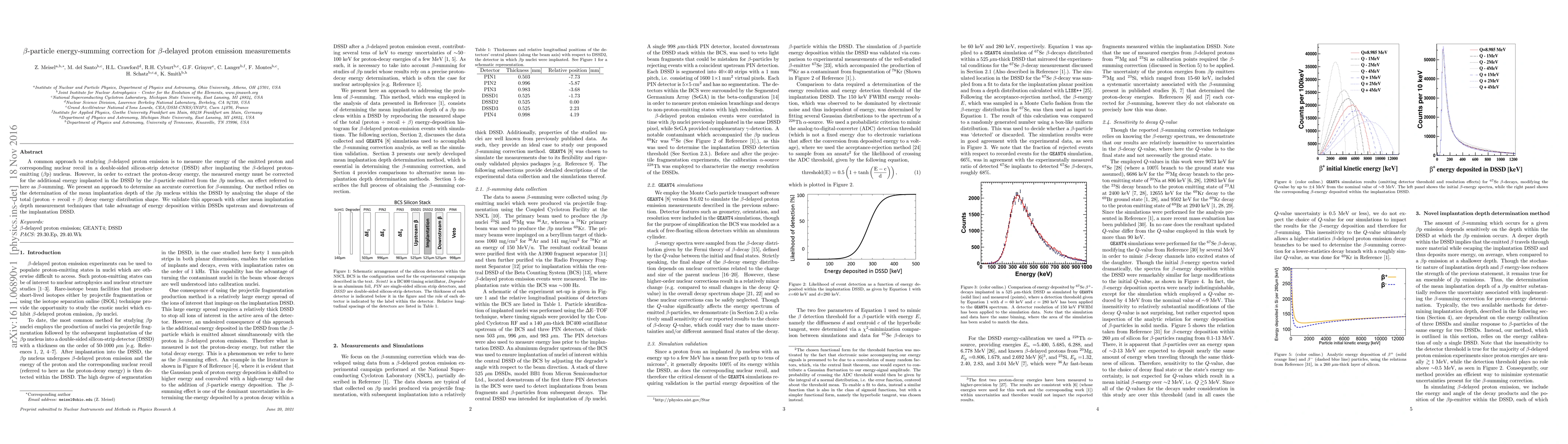 A common approach to studying $\beta$-delayed proton emission is to measure the energy of the emitted proton and corresponding nuclear recoil in a double-sided silicon-strip detector (DSSD) after implanting the $\beta$-delayed proton emitting ($\beta$p) nucleus. However, in order to extract the proton-decay energy, the measured energy must be corrected for the additional energy implanted in the DSSD by the $\beta$-particle emitted from the $\beta$p nucleus, an effect referred to here as $\beta$-summing. We present an approach to determine an accurate correction for $\beta$-summing. Our method relies on the determination of the mean implantation depth of the $\beta$p nucleus within the DSSD by analyzing the shape of the total (proton + recoil + $\beta$) decay energy distribution shape. We validate this approach with other mean implantation depth measurement techniques that take advantage of energy deposition within DSSDs upstream and downstream of the implantation DSSD.