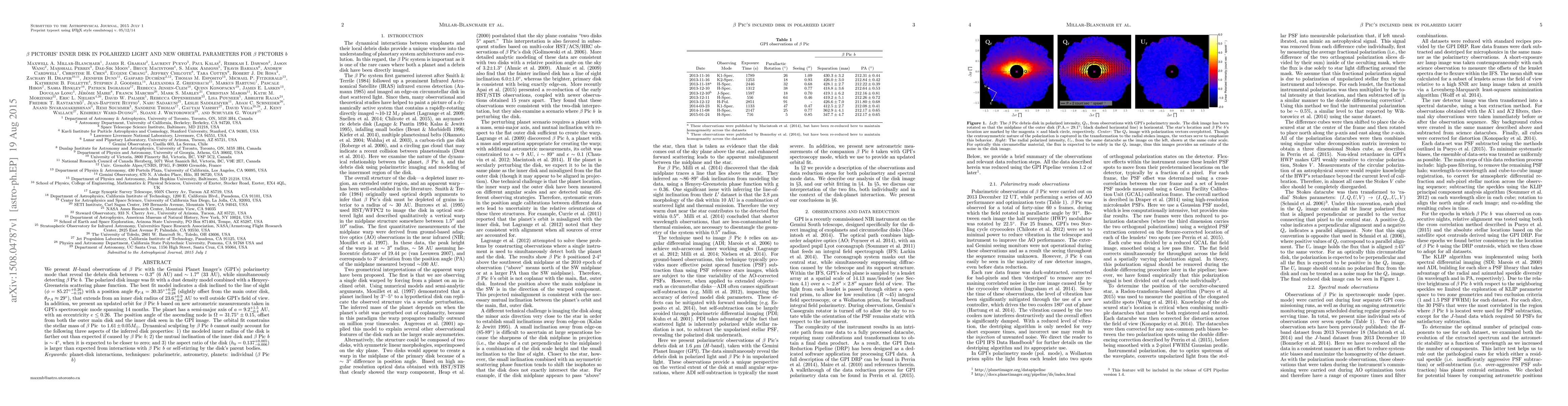 This paper presents $H$-band observations of $\beta$ Pictoris' inner debris disk and an updated orbit for the planet $\beta$ Pic b, revealing a disk inclined at 85.27° and an orbital semi-major axis of 9.2 AU for the planet with an eccentricity ≤ 0.26. The findings suggest dynamical sculpting by $\beta$ Pic b cannot fully explain the disk's properties.