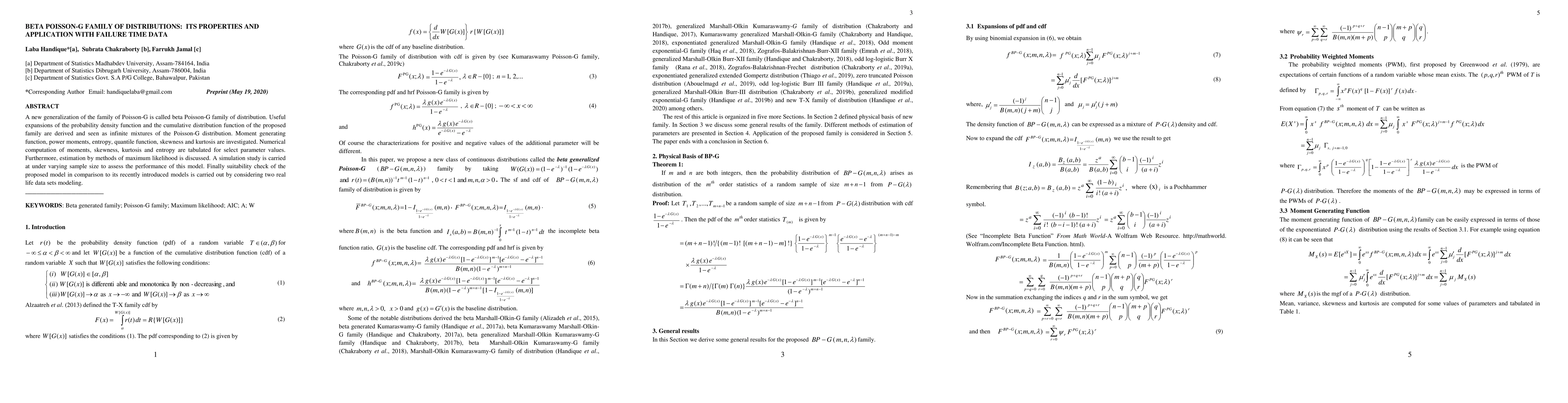 A new generalization of the family of Poisson-G is called beta Poisson-G family of distribution. Useful expansions of the probability density function and the cumulative distribution function of the proposed family are derived and seen as infinite mixtures of the Poisson-G distribution. Moment generating function, power moments, entropy, quantile function, skewness and kurtosis are investigated. Numerical computation of moments, skewness, kurtosis and entropy are tabulated for select parameter values. Furthermore, estimation by methods of maximum likelihood is discussed. A simulation study is carried at under varying sample size to assess the performance of this model. Finally suitability check of the proposed model in comparison to its recently introduced models is carried out by considering two real life data sets modeling.