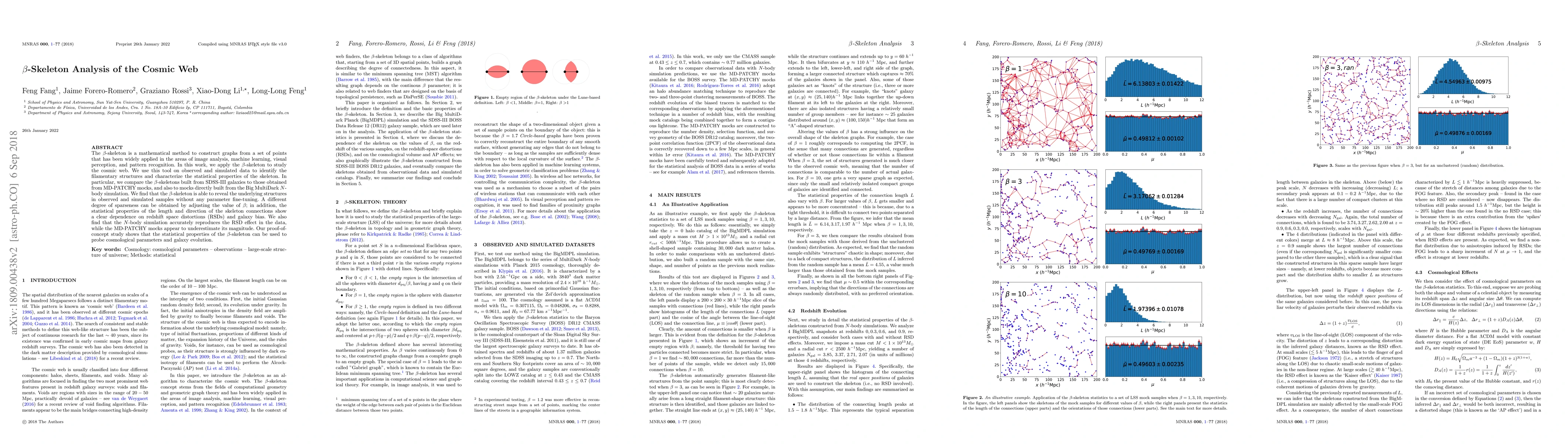 This paper applies the $\beta$-skeleton method to analyze the cosmic web's filamentary structures using both observed and simulated data. The study reveals that the $\beta$-skeleton can effectively identify underlying structures without parameter fine-tuning, and its statistical properties depend on redshift space distortions, cosmological effects, and galaxy bias, suggesting its potential to probe cosmological parameters and galaxy evolution.