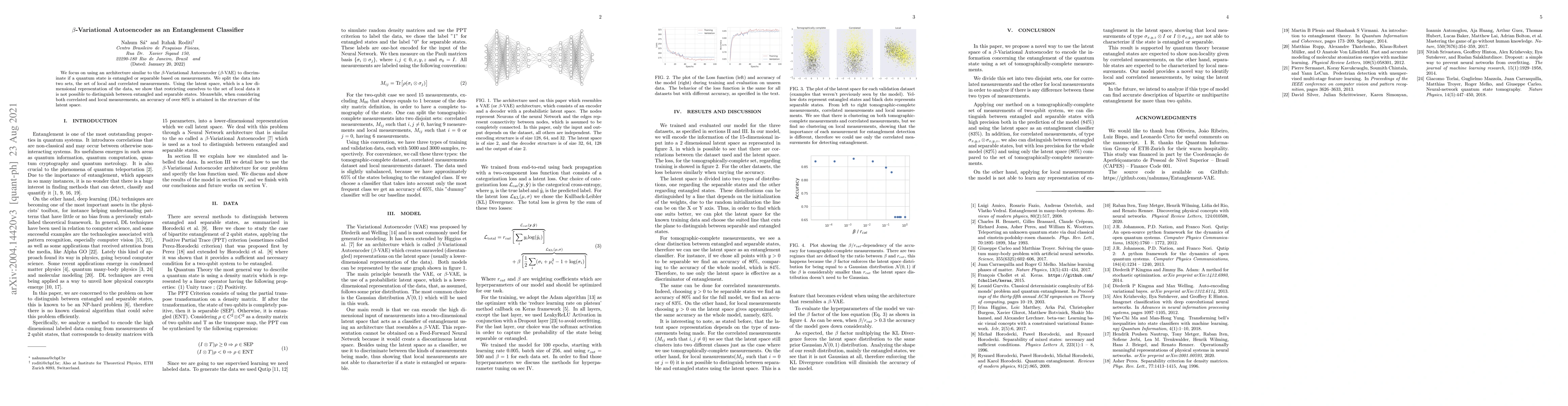 Researchers used a $eta$-Variational Autoencoder to classify quantum states as entangled or separable based on measurements, achieving over 80% accuracy when considering both local and correlated data.