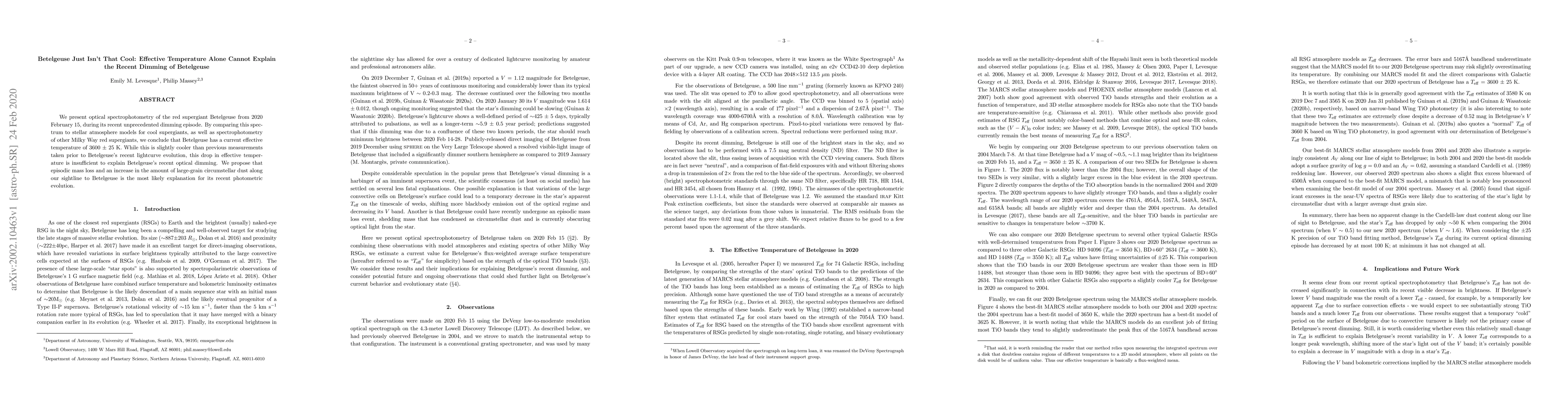 Researchers found that Betelgeuse's recent dimming cannot be explained by a simple drop in effective temperature, instead suggesting episodic mass loss and increased dust as the cause.