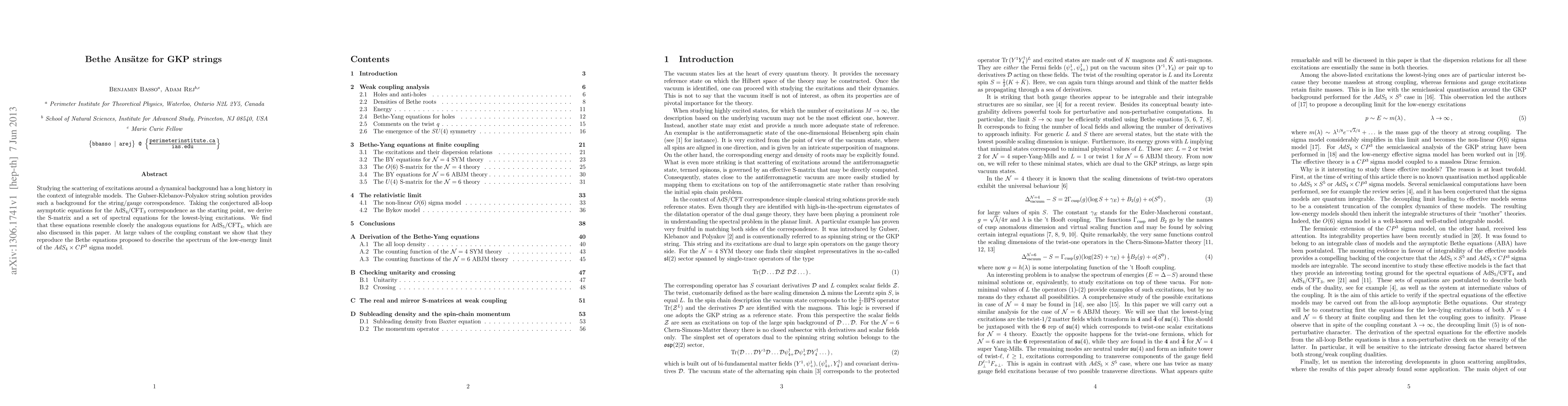 Studying the scattering of excitations around a dynamical background has a long history in the context of integrable models. The Gubser-Klebanov-Polyakov string solution provides such a background for the string/gauge correspondence. Taking the conjectured all-loop asymptotic equations for the AdS_4/CFT_3 correspondence as the starting point, we derive the S-matrix and a set of spectral equations for the lowest-lying excitations. We find that these equations resemble closely the analogous equations for AdS_5/CFT_4, which are also discussed in this paper. At large values of the coupling constant we show that they reproduce the Bethe equations proposed to describe the spectrum of the low-energy limit of the AdS_4xCP^3 sigma model.