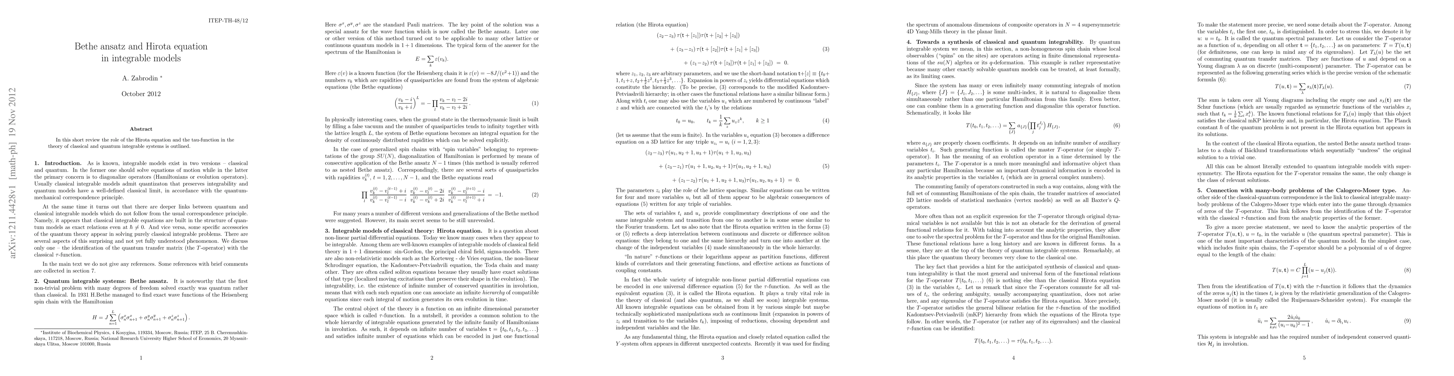 In this short review the role of the Hirota equation and the tau-function in the theory of classical and quantum integrable systems is outlined.