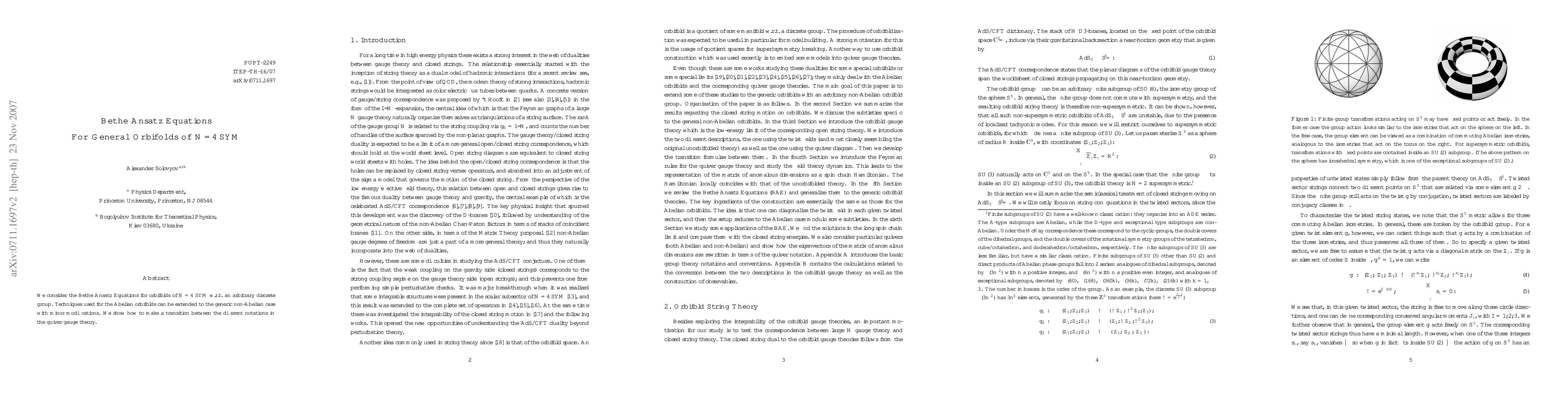 We consider the Bethe Ansatz Equations for orbifolds of N =4 SYM w.r.t. an arbitrary discrete group. Techniques used for the Abelian orbifolds can be extended to the generic non-Abelian case with minor modifications. We show how to make a transition between the different notations in the quiver gauge theory.