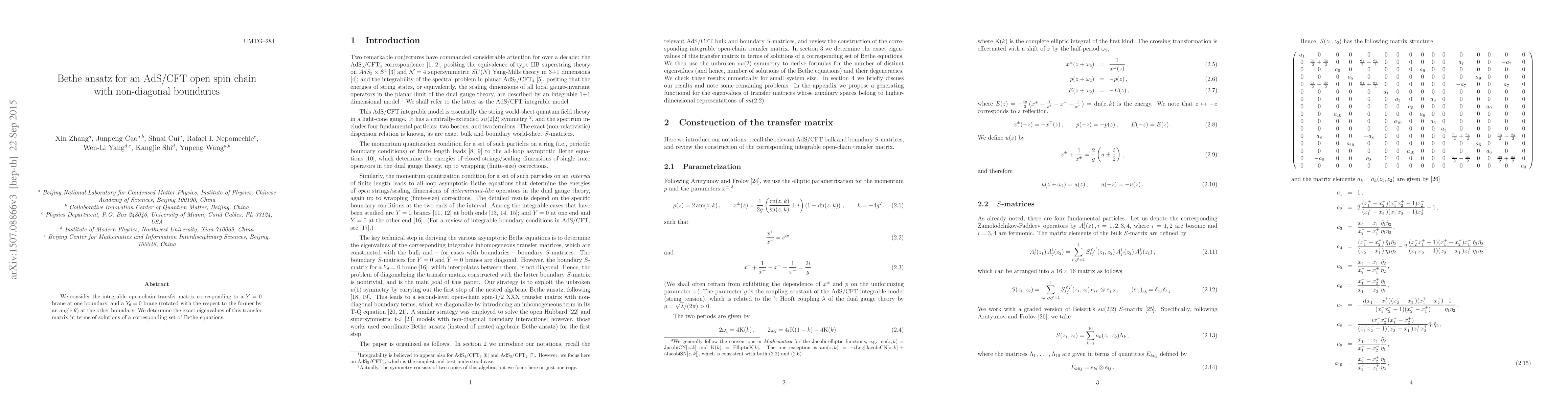 We consider the integrable open-chain transfer matrix corresponding to a Y=0 brane at one boundary, and a Y_theta=0 brane (rotated with the respect to the former by an angle theta) at the other boundary. We determine the exact eigenvalues of this transfer matrix in terms of solutions of a corresponding set of Bethe equations.