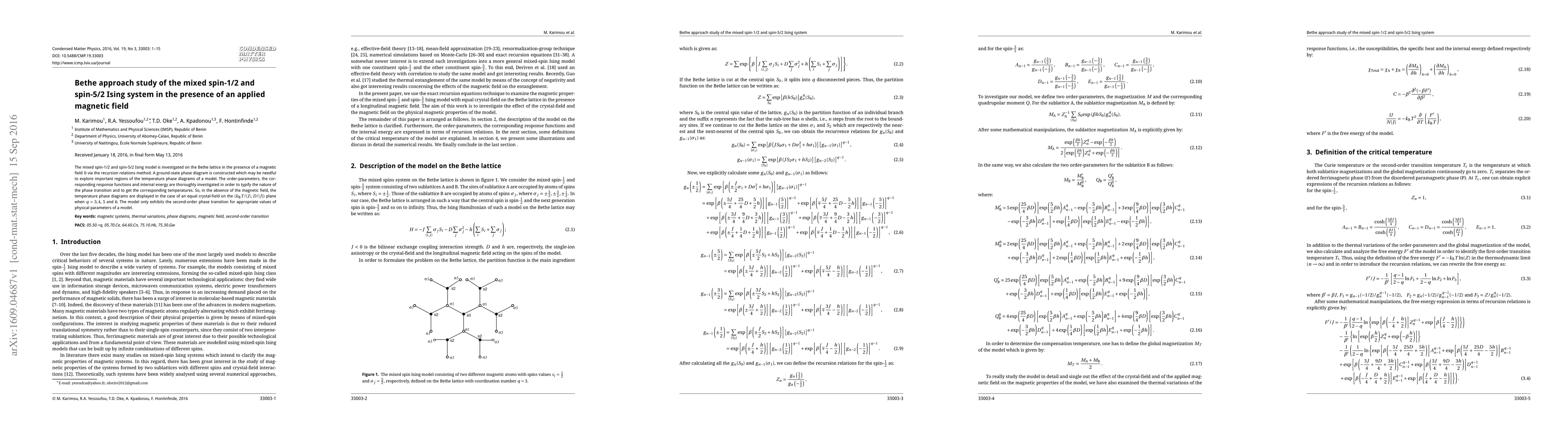This paper studies the mixed spin-1/2 and spin-5/2 Ising model on the Bethe lattice using recursion relations, constructing a ground-state phase diagram and analyzing phase transitions, order parameters, and internal energy in the presence of a magnetic field. The model shows a second-order phase transition under specific conditions.
