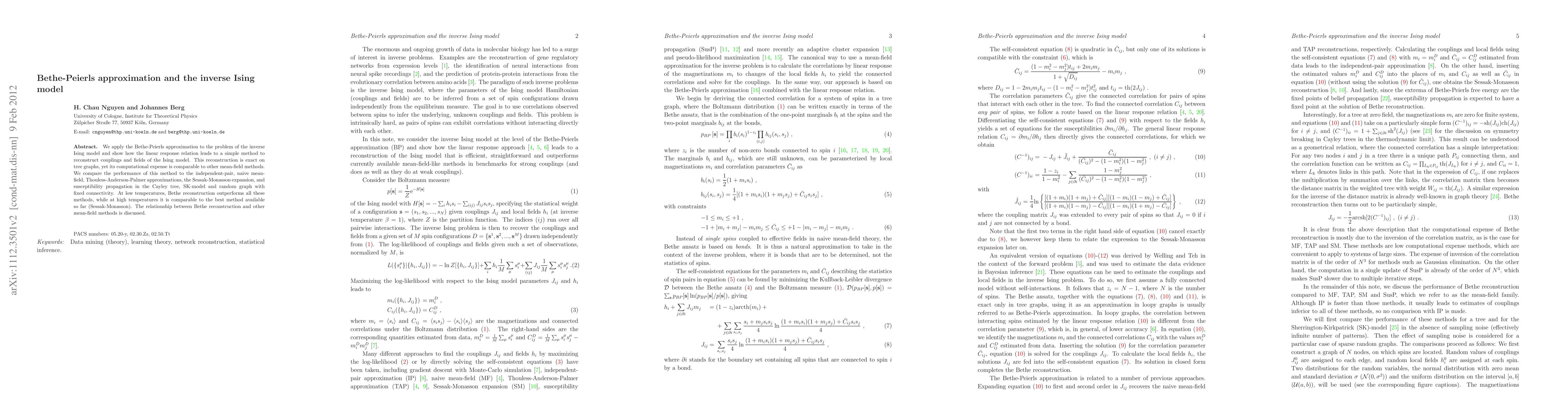 We apply the Bethe-Peierls approximation to the problem of the inverse Ising model and show how the linear response relation leads to a simple method to reconstruct couplings and fields of the Ising model. This reconstruction is exact on tree graphs, yet its computational expense is comparable to other mean-field methods. We compare the performance of this method to the independent-pair, naive mean- field, Thouless-Anderson-Palmer approximations, the Sessak-Monasson expansion, and susceptibility propagation in the Cayley tree, SK-model and random graph with fixed connectivity. At low temperatures, Bethe reconstruction outperforms all these methods, while at high temperatures it is comparable to the best method available so far (Sessak-Monasson). The relationship between Bethe reconstruction and other mean- field methods is discussed.