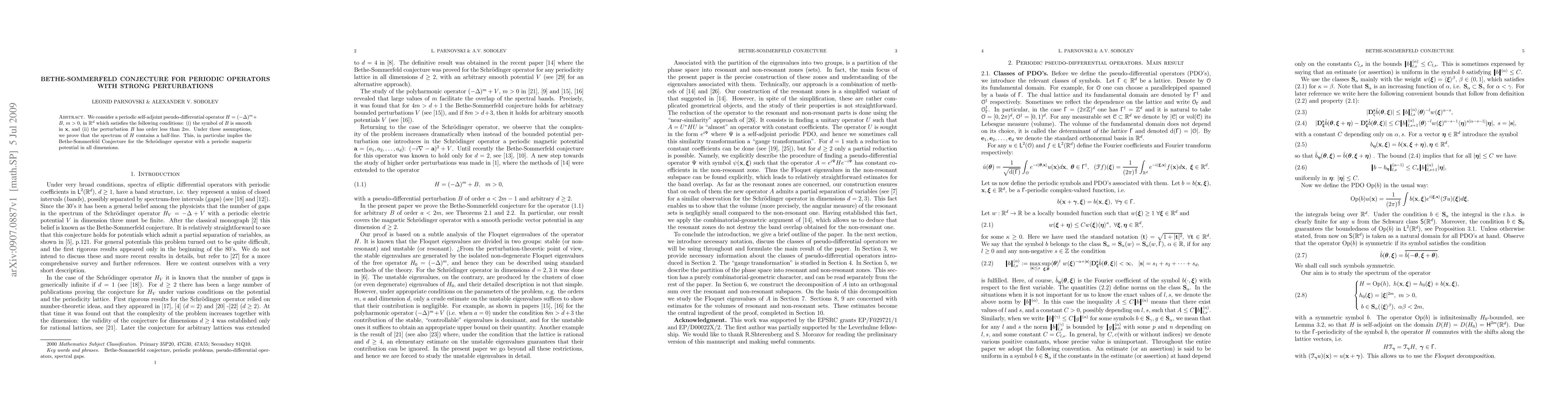 The paper proves that a periodic self-adjoint pseudo-differential operator with a smooth symbol and a perturbation of lower order has a half-line in its spectrum, thereby confirming the Bethe-Sommerfeld conjecture for Schrödinger operators with periodic magnetic potentials across all dimensions.