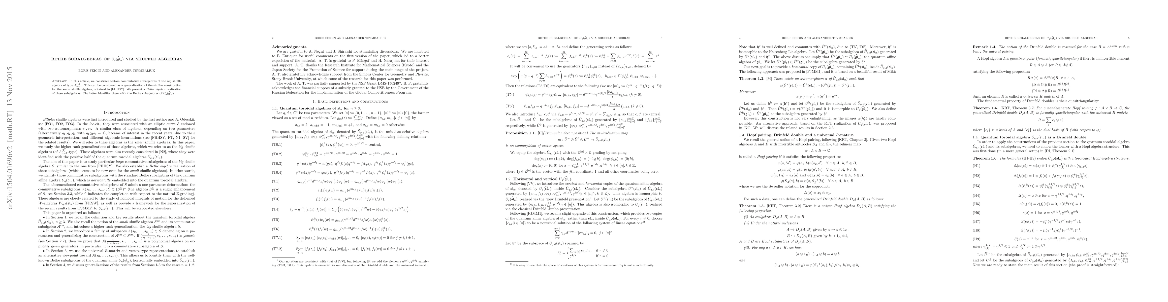 Researchers construct a generalization of a previous construction for quantum affine gl(n) subalgebras using shuffle algebras, revealing a connection to Bethe subalgebras.