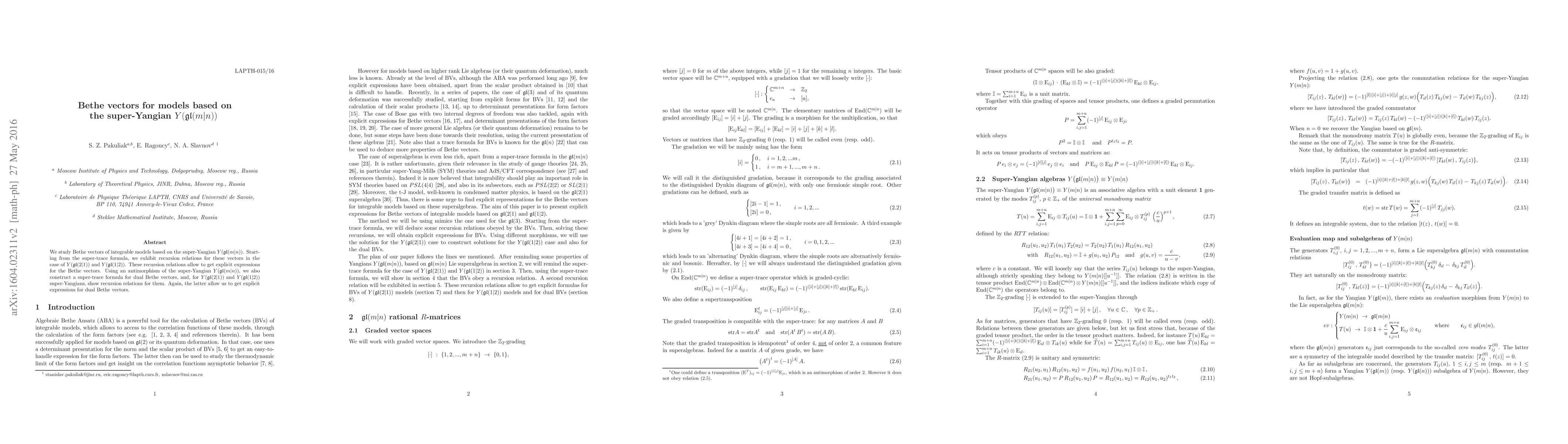 This paper investigates Bethe vectors for integrable models derived from the super-Yangian $Y(\mathfrak{gl}(m|n))$, establishing recursion relations for explicit expressions of these vectors for specific cases. It also constructs a super-trace formula for dual Bethe vectors, providing recursion relations for them in the same models.