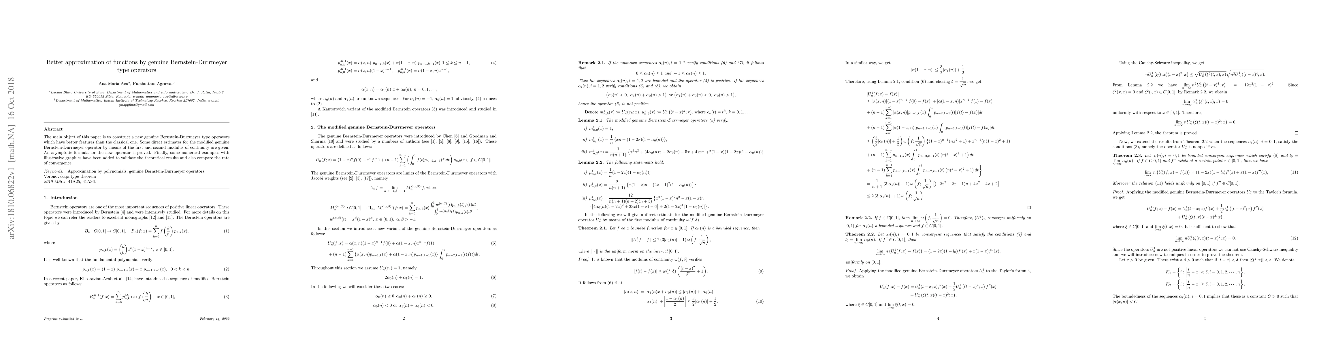 This paper introduces a new genuine Bernstein-Durrmeyer type operator with improved approximation features over classical operators. It provides direct estimates and an asymptotic formula for the new operator, along with numerical examples and graphics to validate the theoretical results and compare convergence rates.