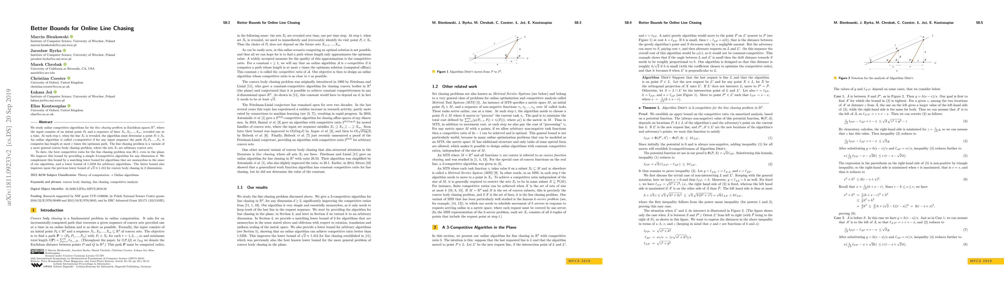 This paper presents a new $3$-competitive algorithm for the online line chasing problem in any Euclidean space, significantly improving the previous best competitive ratio of $28.1$. Additionally, it raises the lower bound on the competitive ratio from $1.412$ to $1.5358$.