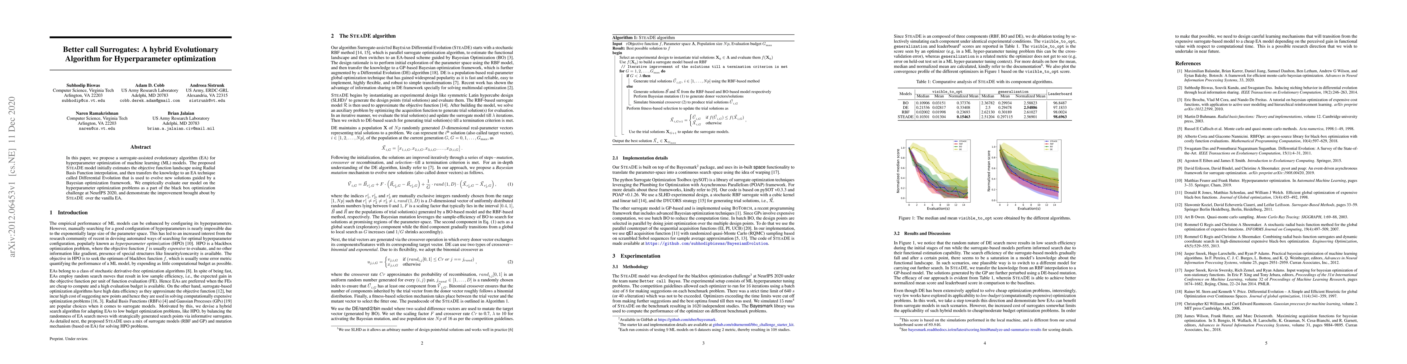 This paper introduces STEADE, a hybrid Evolutionary Algorithm for hyperparameter optimization in machine learning models, combining RadialBasis Function interpolation with Differential Evolution guided by Bayesian optimization. The proposed model shows improved performance over traditional Evolutionary Algorithms in black box optimization challenges.