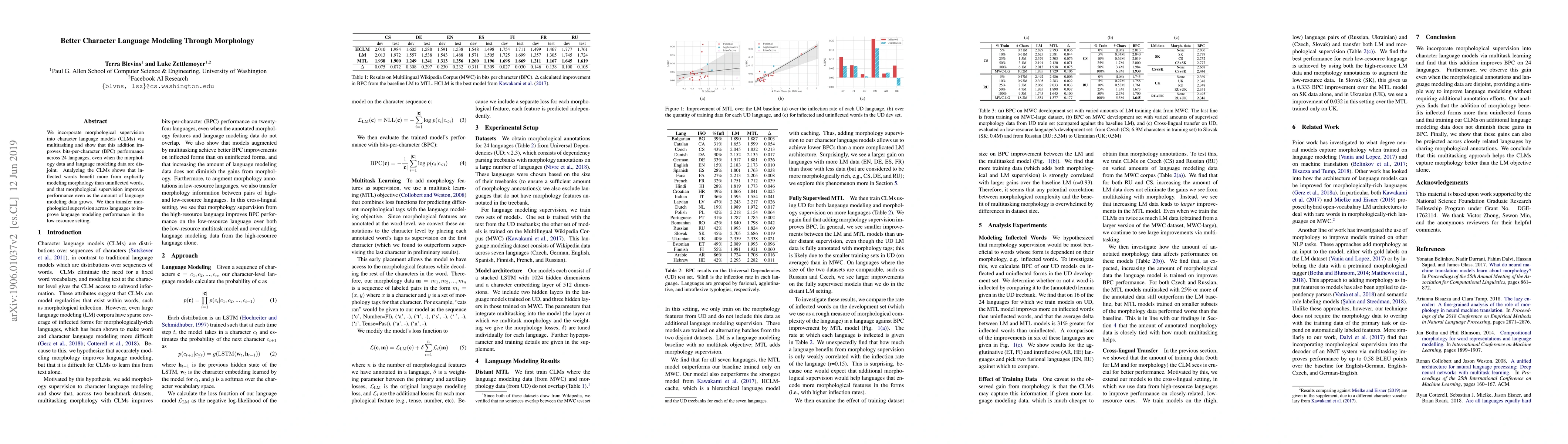 This research is important because it demonstrates the potential of combining CLMs with morphology-based multtask learning to improve language model performance, particularly for inflectional forms.