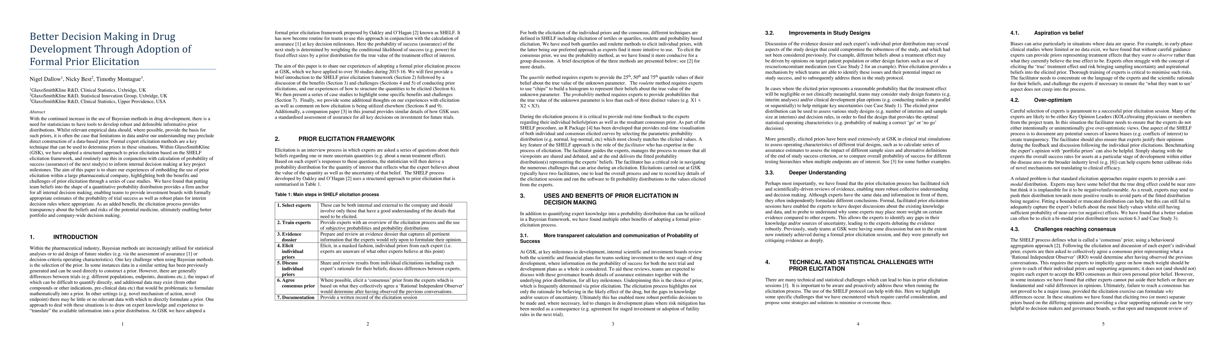 This paper shares a pharmaceutical company's experience with using formal expert elicitation to develop robust prior distributions for drug development decisions, improving portfolio and company-wide decision making.