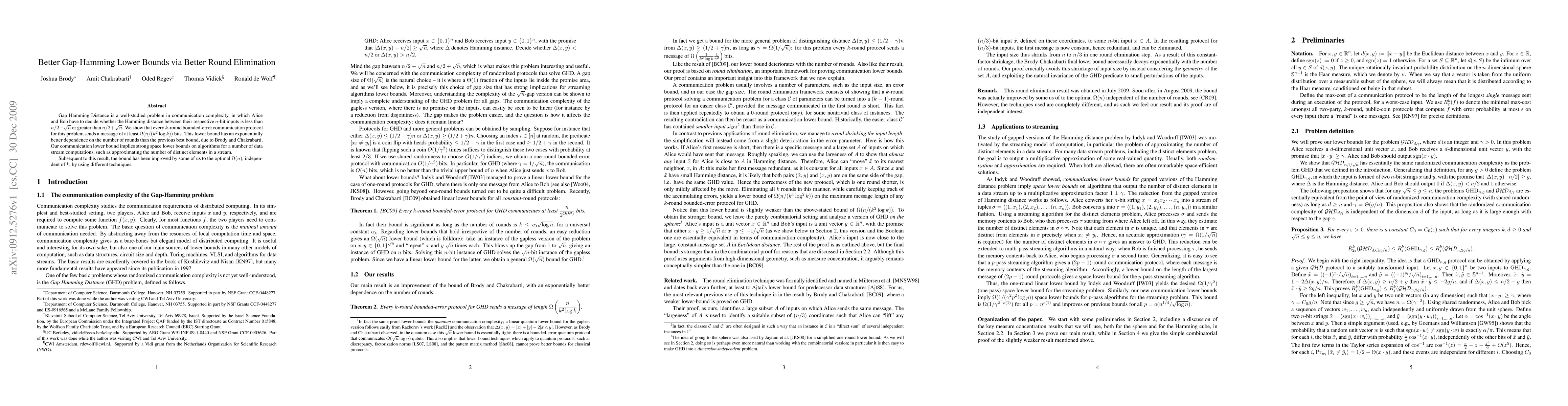 Gap Hamming Distance is a well-studied problem in communication complexity, in which Alice and Bob have to decide whether the Hamming distance between their respective n-bit inputs is less than n/2-sqrt(n) or greater than n/2+sqrt(n). We show that every k-round bounded-error communication protocol for this problem sends a message of at least Omega(n/(k^2\log k)) bits. This lower bound has an exponentially better dependence on the number of rounds than the previous best bound, due to Brody and Chakrabarti. Our communication lower bound implies strong space lower bounds on algorithms for a number of data stream computations, such as approximating the number of distinct elements in a stream. Subsequent to this result, the bound has been improved by some of us to the optimal Omega(n), independent of k, by using different techniques.