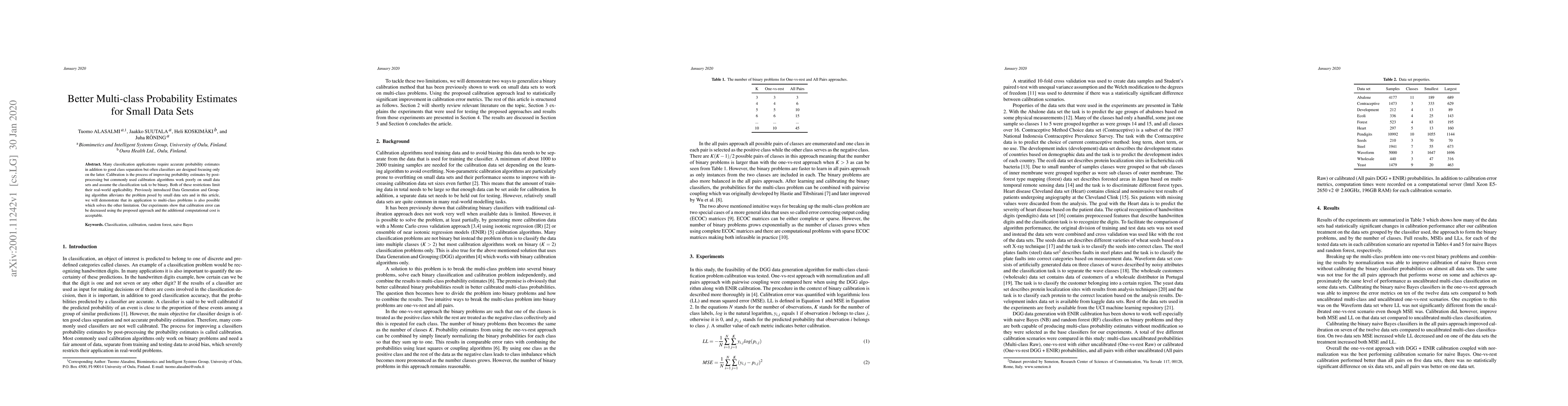 This paper proposes a new method to improve multi-class probability estimates in small data sets, addressing previous limitations of calibration algorithms, which can decrease calibration error with minimal additional computational cost.