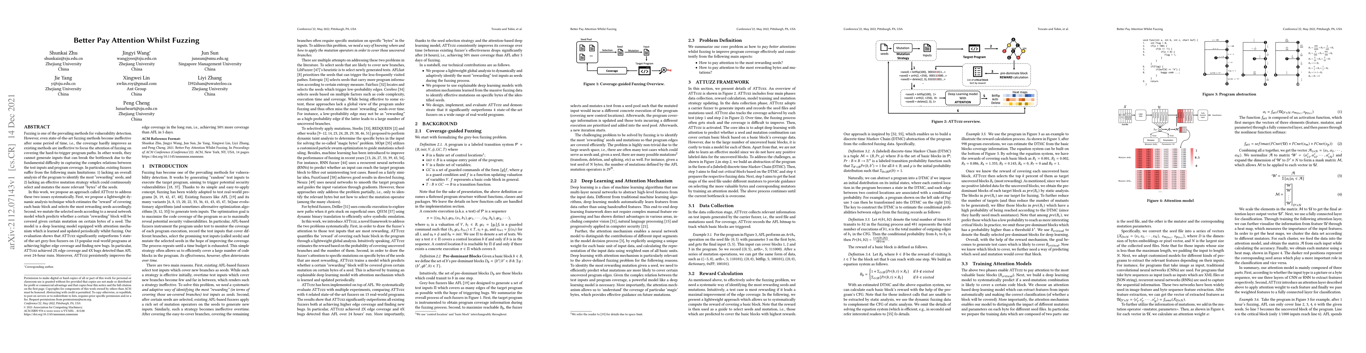 This paper proposes ATTuzz, a novel fuzzing approach that employs dynamic analysis and a deep learning model with an attention mechanism to identify and mutate the most rewarding seeds for better coverage and vulnerability detection. ATTuzz significantly outperforms existing fuzzers in edge coverage and bug detection, achieving 2X edge coverage and 4X more bugs than AFL over 24-hour runs.