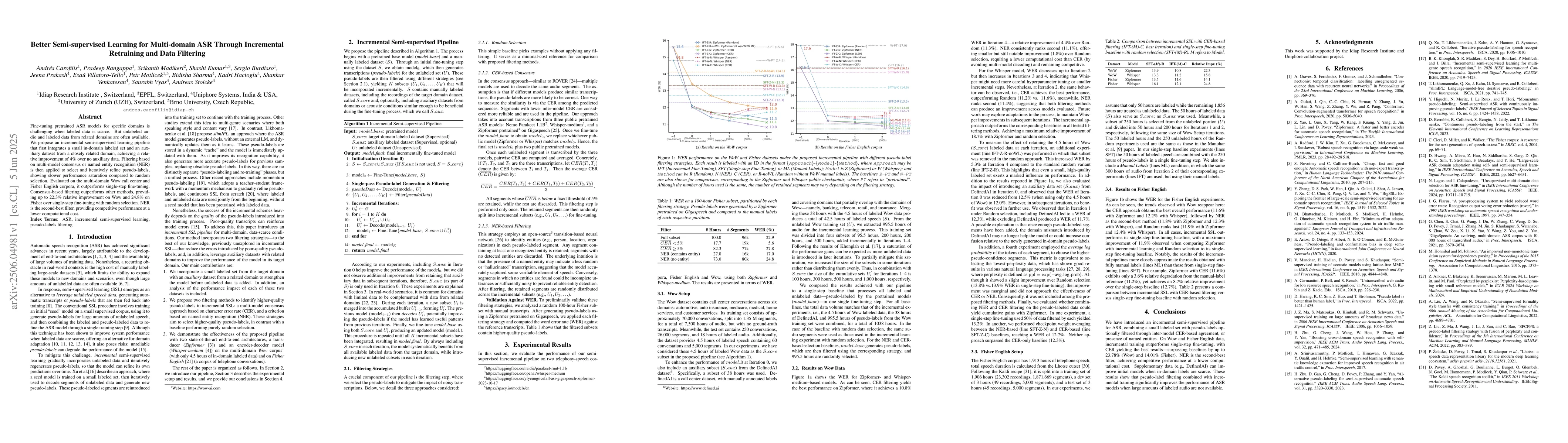 This research proposes an incremental semi-supervised learning pipeline for improving ASR models on multi-domain tasks, achieving significant relative improvements over single-step fine-tuning and outperforming other filtering methods.