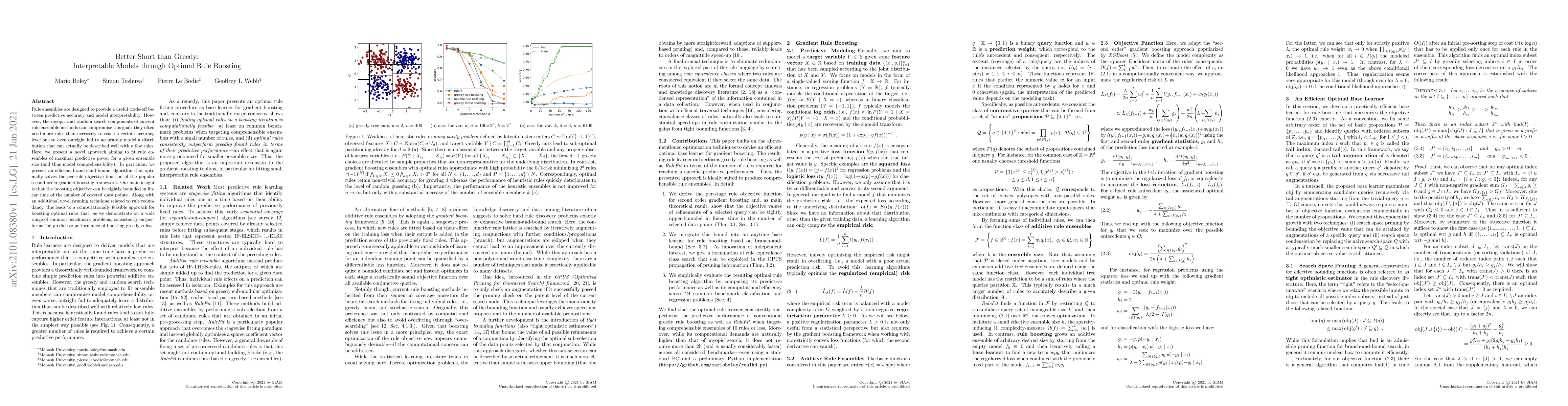 A new algorithm optimizes rule ensembles for predictive power while maintaining model interpretability, outperforming traditional greedy methods on various benchmark problems.