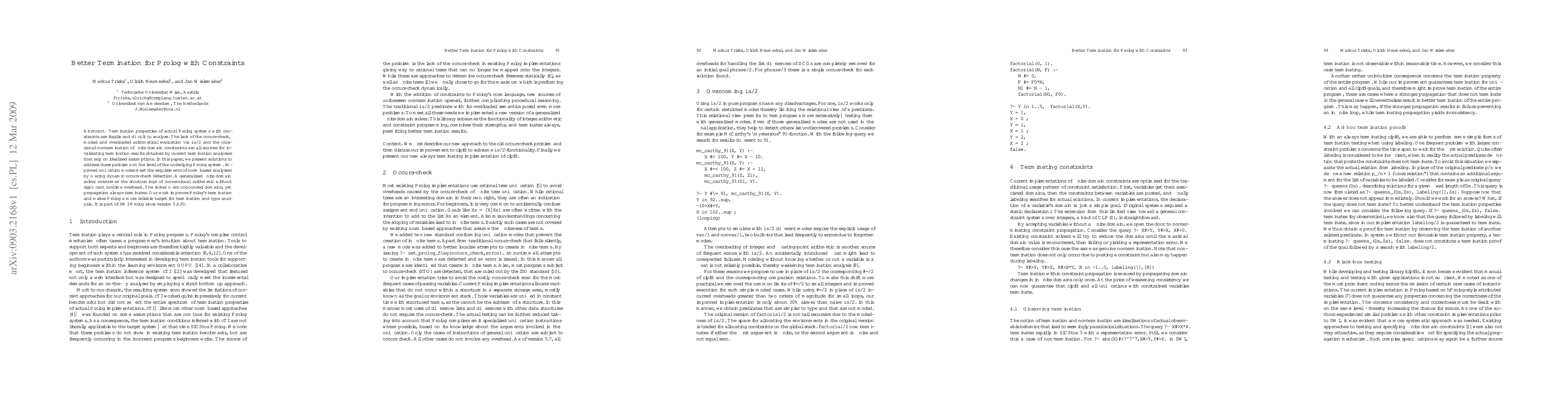 Termination properties of actual Prolog systems with constraints are fragile and difficult to analyse. The lack of the occurs-check, moded and overloaded arithmetical evaluation via is/2 and the occasional nontermination of finite domain constraints are all sources for invalidating termination results obtained by current termination analysers that rely on idealized assumptions. In this paper, we present solutions to address these problems on the level of the underlying Prolog system. Improved unification modes meet the requirements of norm based analysers by offering dynamic occurs-check detection. A generalized finite domain solver overcomes the shortcomings of conventional arithmetic without significant runtime overhead. The solver offers unbounded domains, yet propagation always terminates. Our work improves Prolog's termination and makes Prolog a more reliable target for termination and type analysis. It is part of SWI-Prolog since version 5.6.50.