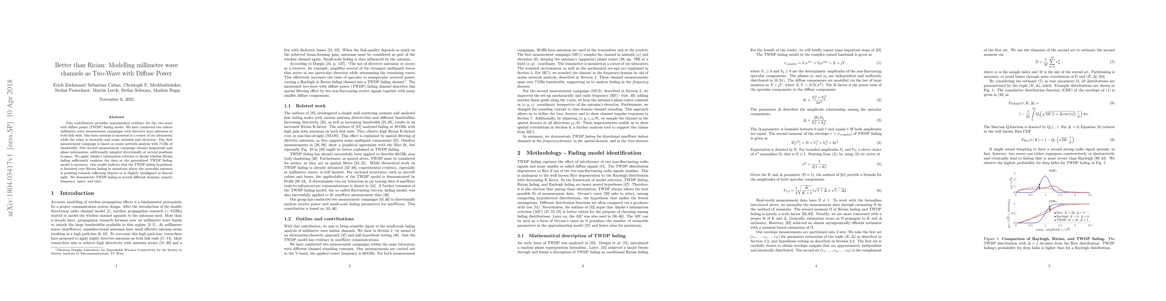 This contribution provides experimental evidence for the two-wave with diffuse power (TWDP) fading model. We have conducted two indoor millimetre wave measurement campaigns with directive horn antennas at both link ends. One horn antenna is mounted in a corner of our laboratory, while the other is steerable and scans azimuth and elevation. Our first measurement campaign is based on scalar network analysis with 7 GHz of bandwidth. Our second measurement campaign obtains magnitude and phase information, additionally sampled directionally at several positions in space. %This second measurement campaign is limited to 2 GHz bandwidth. We apply Akaike's information criterion to decide whether Rician fading sufficiently explains the data or the generalized TWDP fading model is necessary. Our results indicate that the TWDP fading hypothesis is favoured over Rician fading in situations where the steerable antenna is pointing towards reflecting objects or is slightly misaligned at line-of-sight. We demonstrate TWDP fading in several different domains, namely, frequency, space, and time.