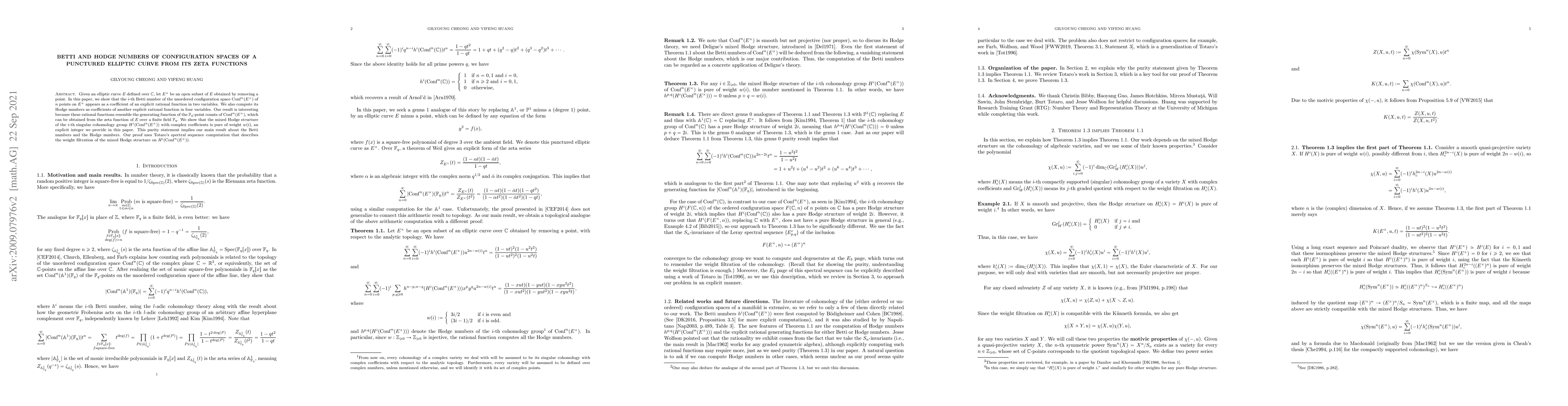 Researchers connected zeta functions of elliptic curves to configuration spaces, finding explicit rational functions for Betti numbers and Hodge numbers that resemble point counts in finite fields.