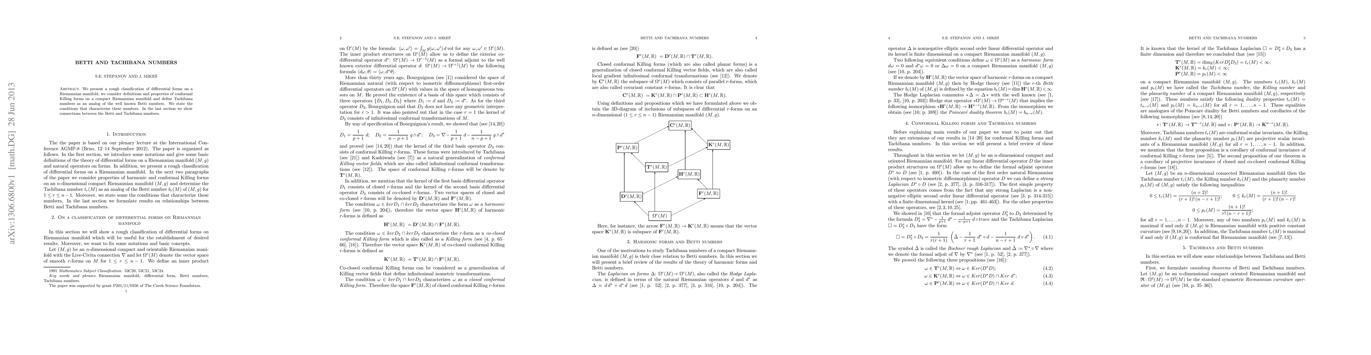 We present a rough classification of differential forms on a Riemannian manifold, we consider definitions and properties of conformal Killing forms on a compact Riemannian manifold and define Tachibana numbers as an analog of the well known Betti numbers. We state the conditions that characterize these numbers. In the last section we show connections between the Betti and Tachibana numbers.