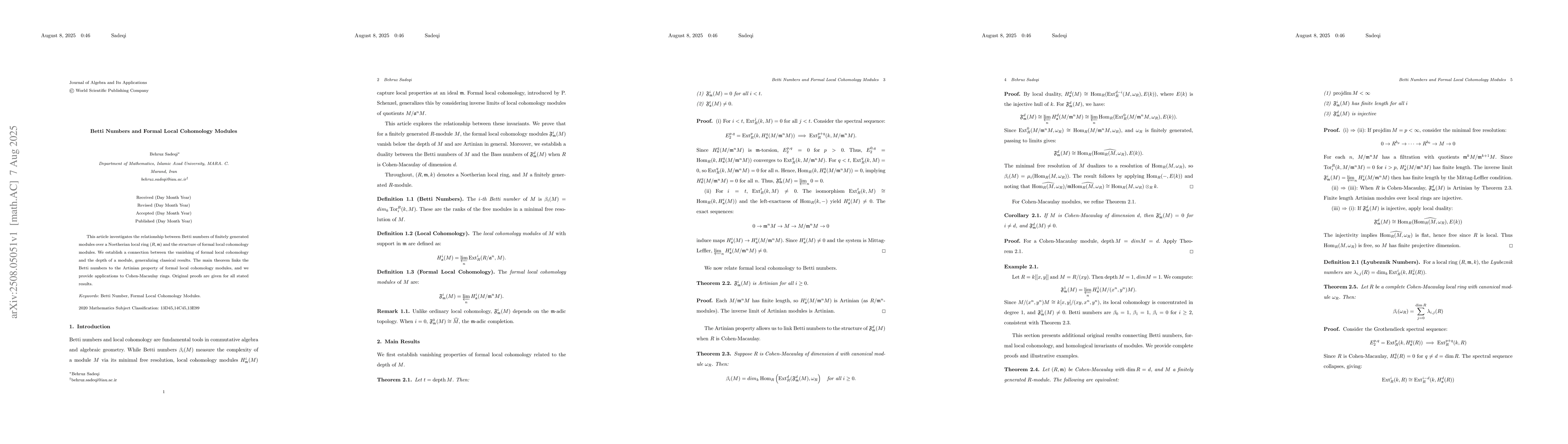 This article investigates the relationship between Betti numbers of finitely generated modules over a Noetherian local ring $(R, \mathfrak{m})$ and the structure of formal local cohomology modules. We establish a connection between the vanishing of formal local cohomology and the depth of a module, generalizing classical results. The main theorem links the Betti numbers to the Artinian property of formal local cohomology modules, and we provide applications to Cohen-Macaulay rings. Original proofs are given for all stated results.