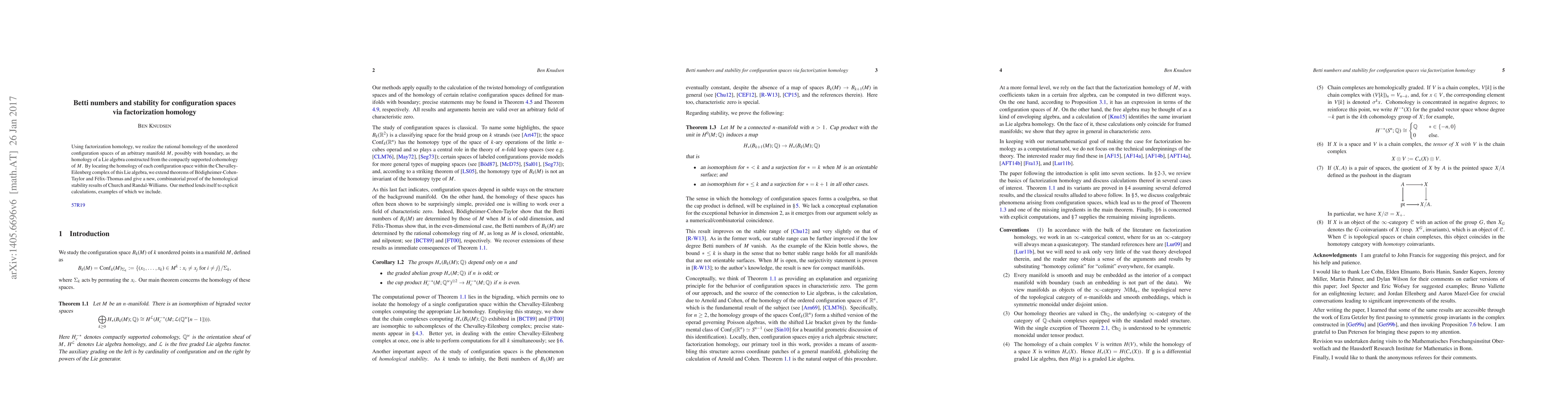 This paper utilizes factorization homology to express the rational homology of unordered configuration spaces of a manifold $M$ as the homology of a Lie algebra derived from $M$'s compactly supported cohomology. It provides a combinatorial proof of homological stability results and extends existing theorems with explicit calculation examples.