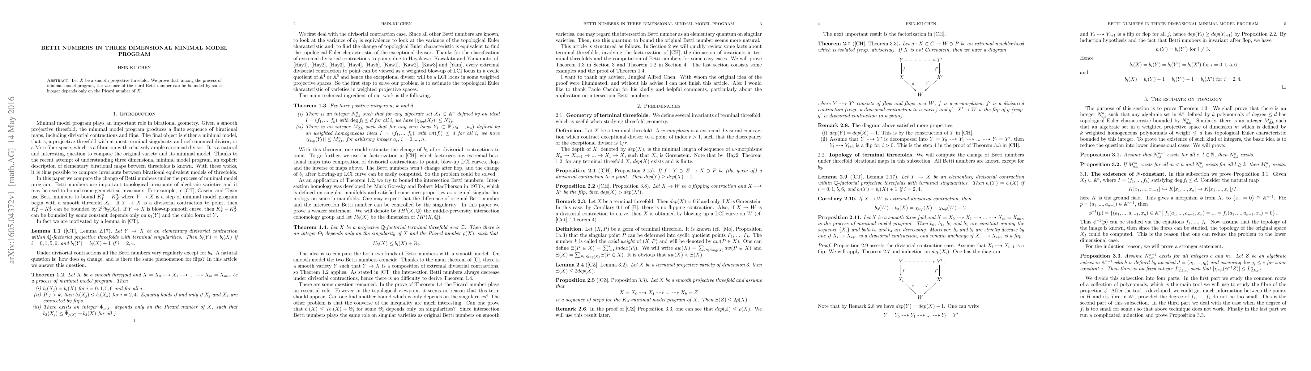 Summary: This paper demonstrates that the variance of the third Betti number in the minimal model program for smooth projective threefolds is bounded by an integer that depends solely on the Picard number of the threefold. This provides a significant constraint in the study of three-dimensional algebraic geometry.
